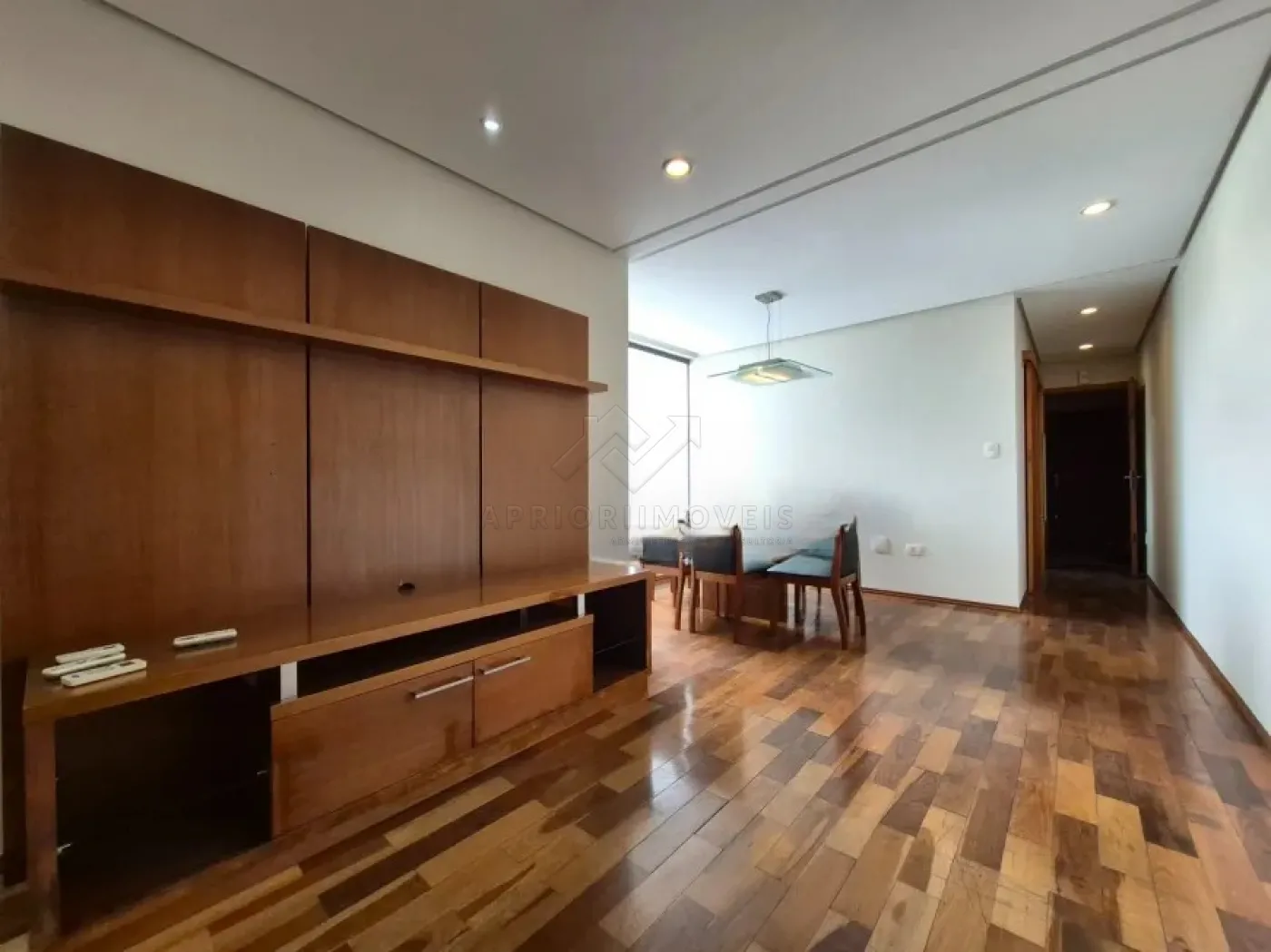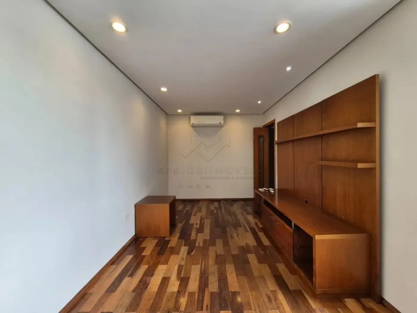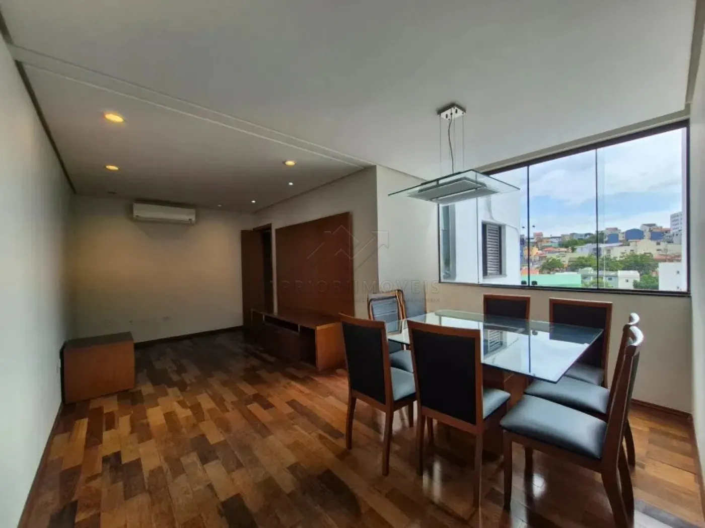 Sala dois ambientes com sanca em gesso e ar-condicionado;