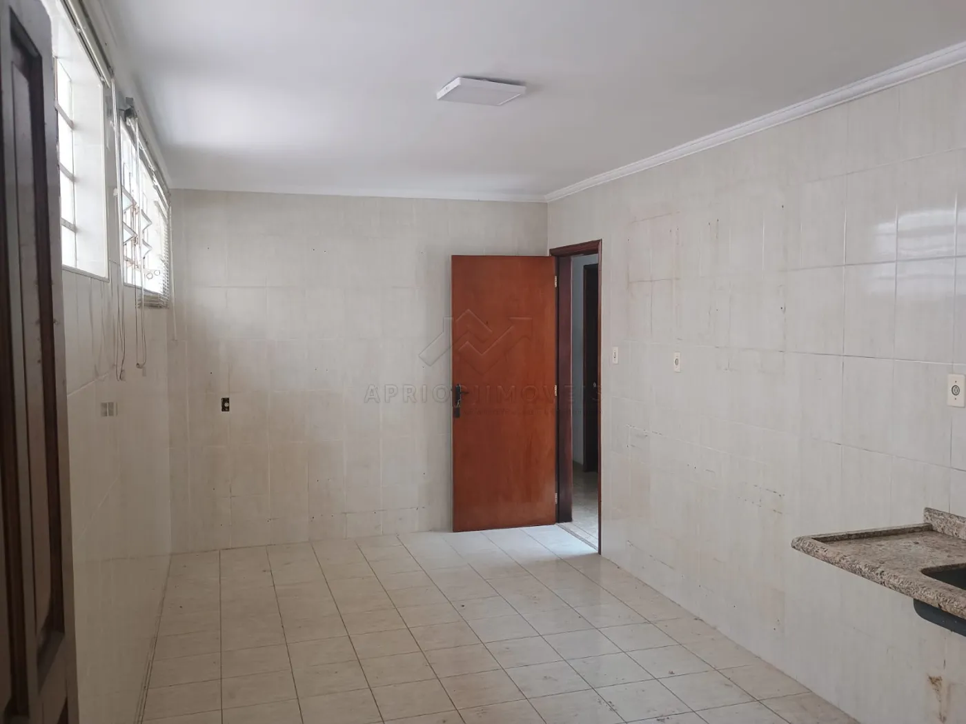 Cozinha ampla, toda azulejada;