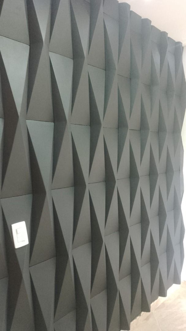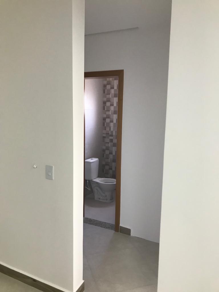 Sala ampla com banheiro, acabamento em 3D, com mais uma sala privada.