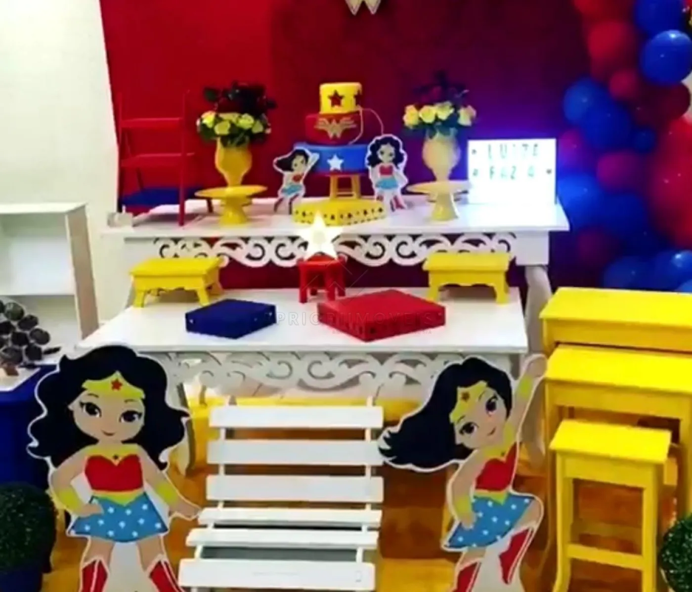 12 mesas de madeira;