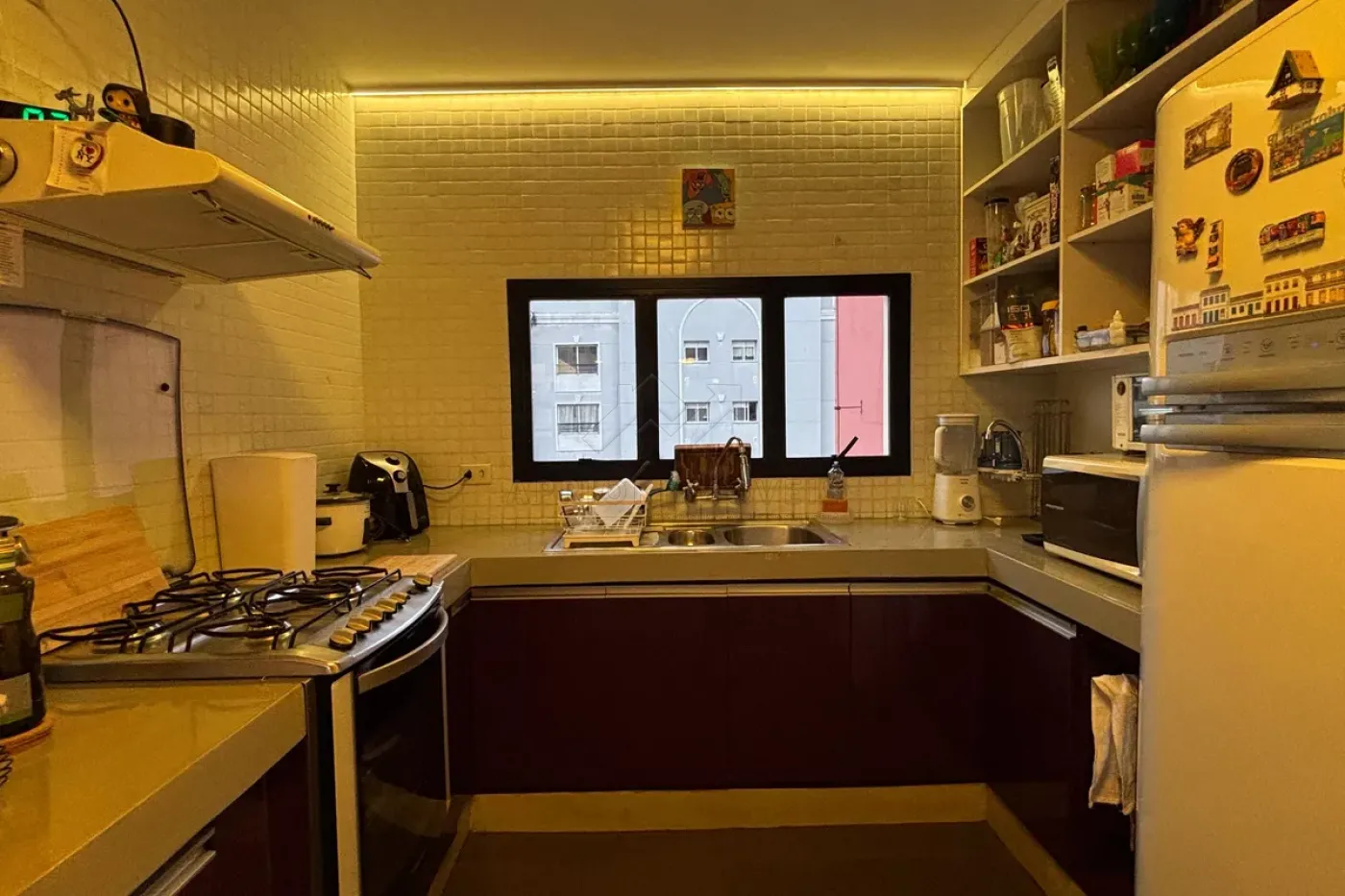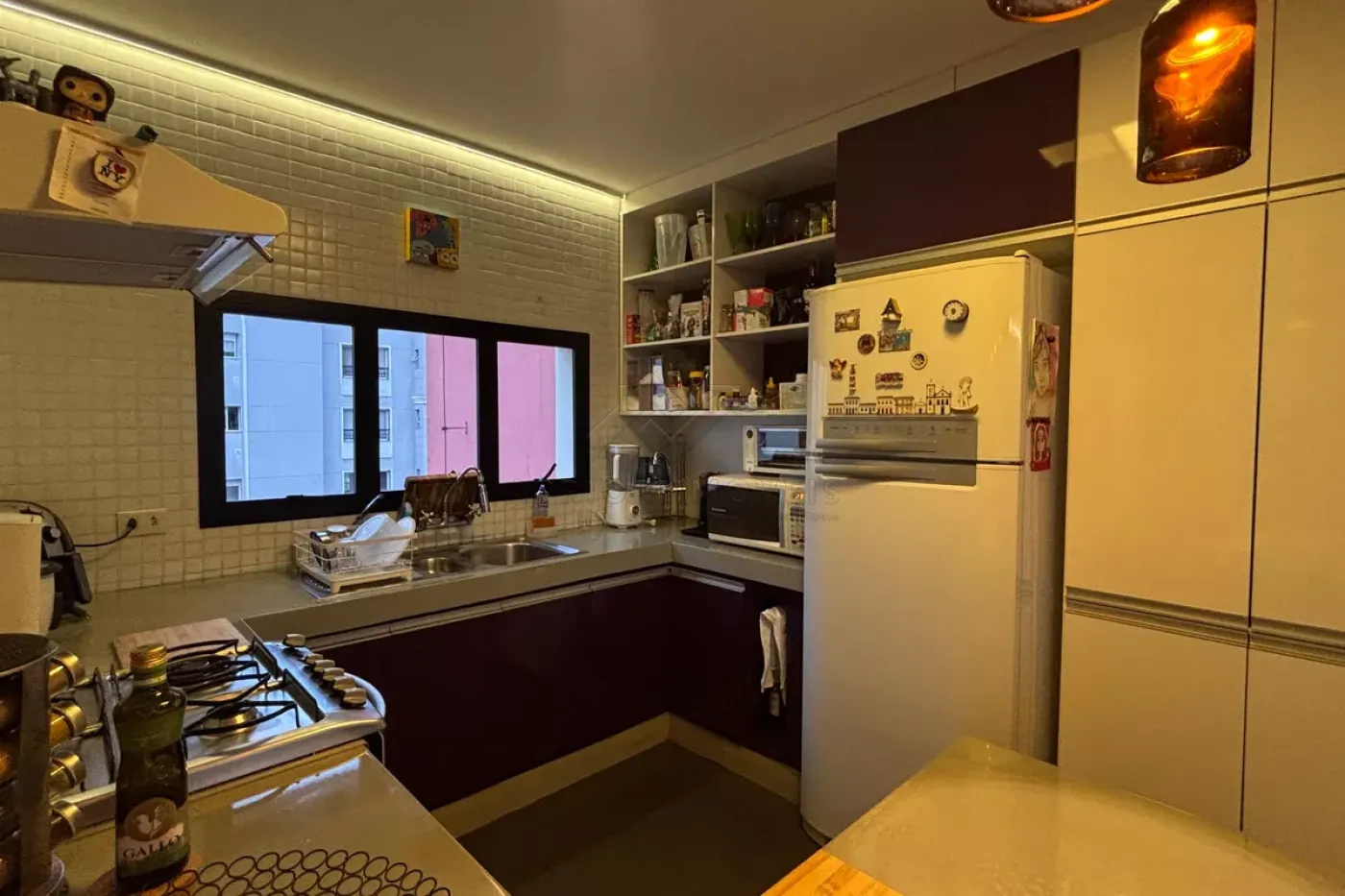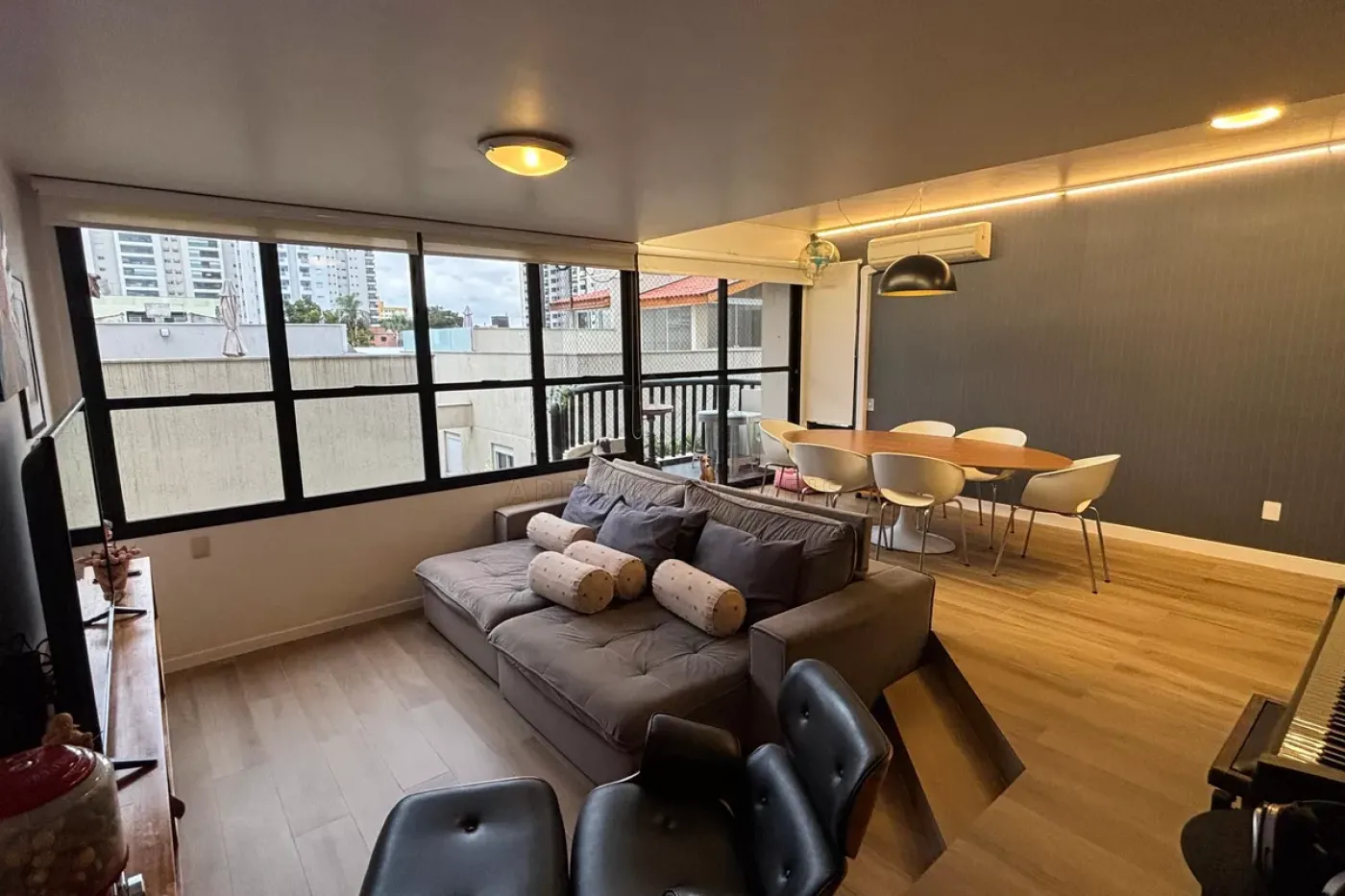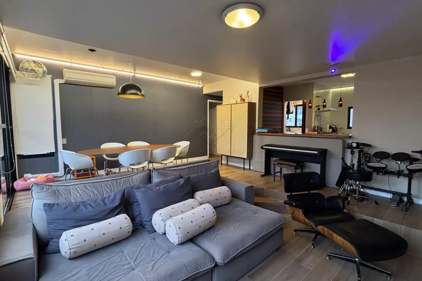 Sala dois ambientes integrada com a cozinha planejada;