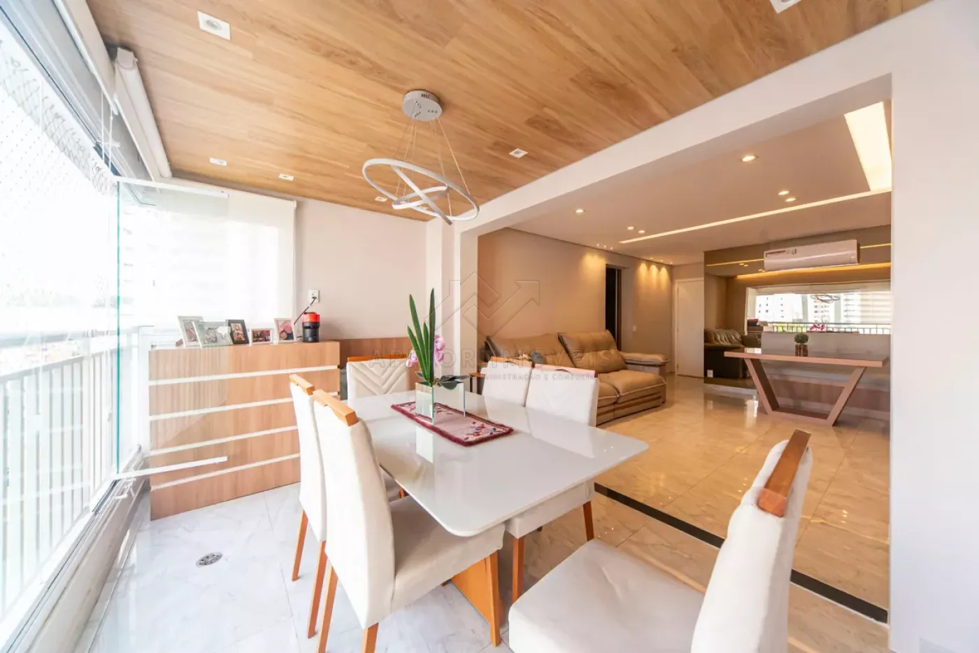 Sala com canto alemão integrada com sacada Gourmet e Churrasqueira