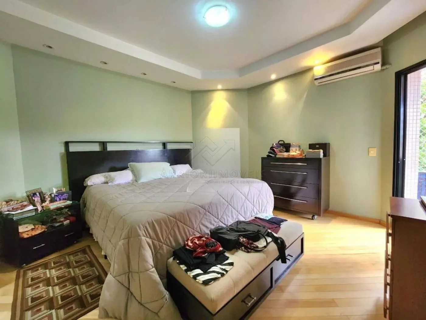 04 dormitórios em piso madeira sendo 02 suítes com hidromassagem (01 master com ar condicionado e sacada);