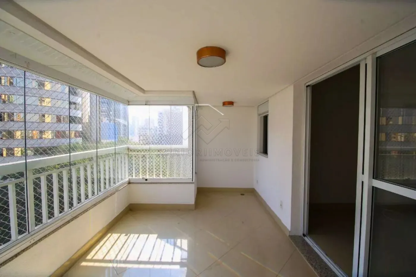 Sala ampla com sacada envidraçada e vista definitiva;