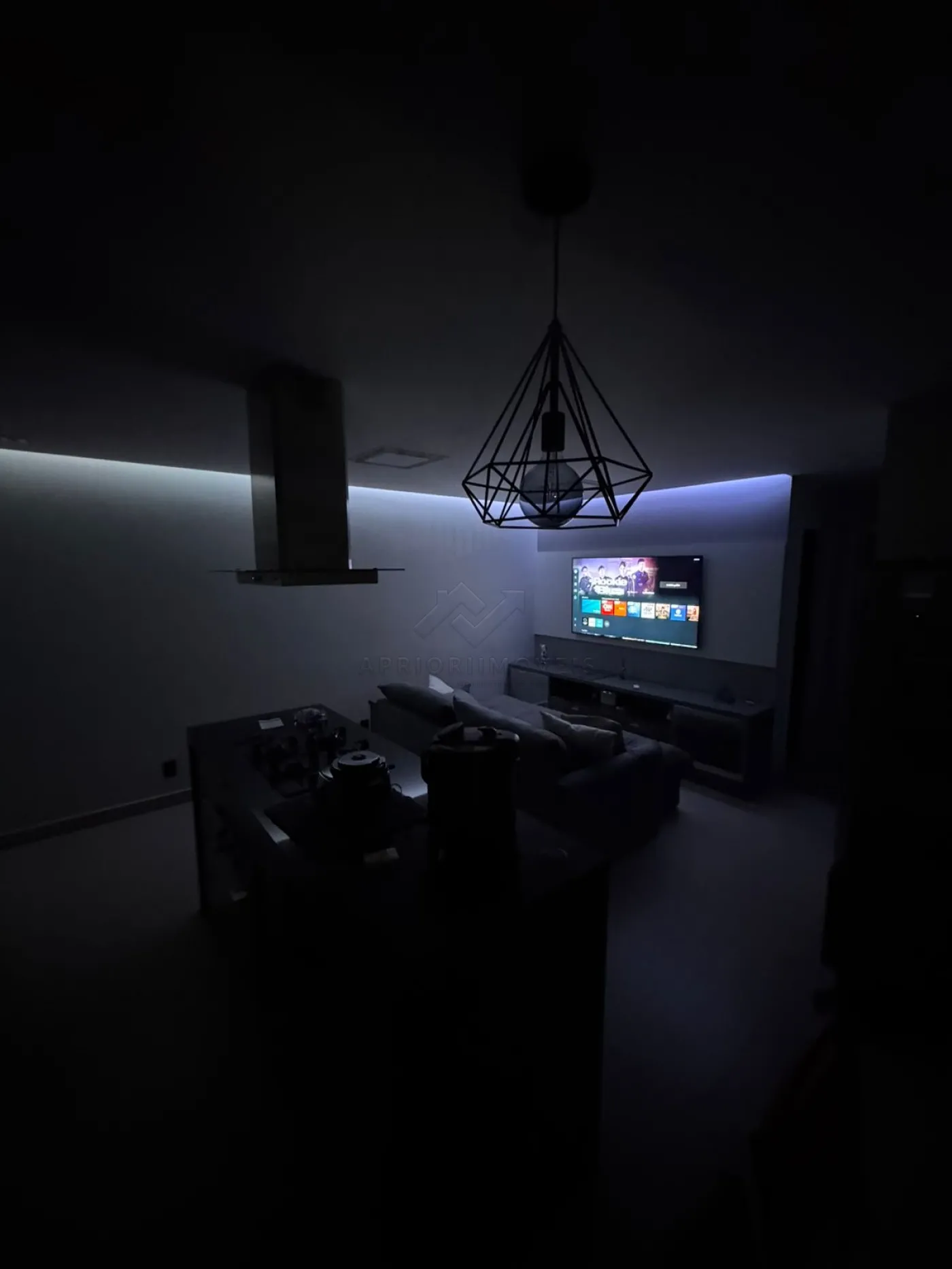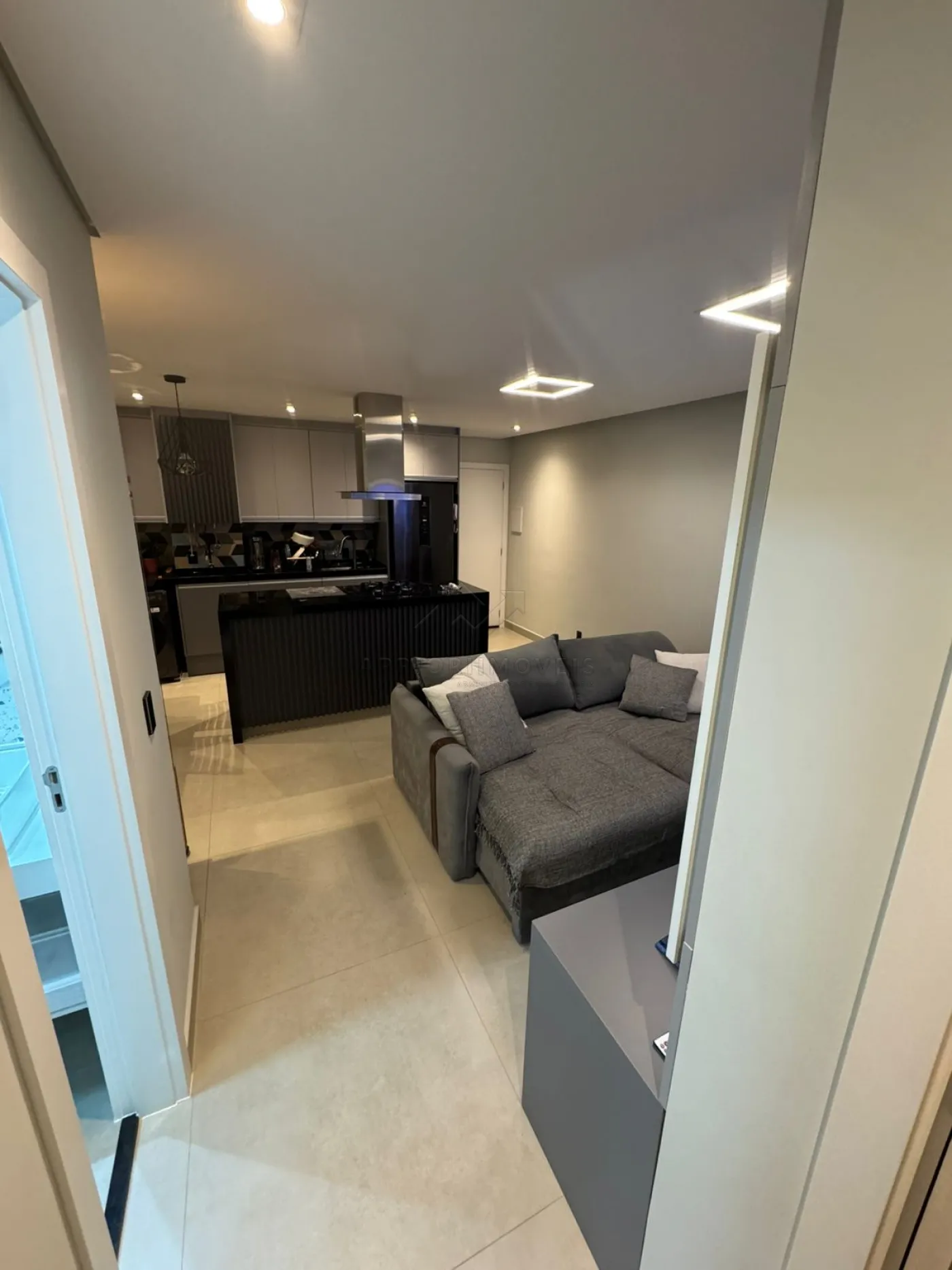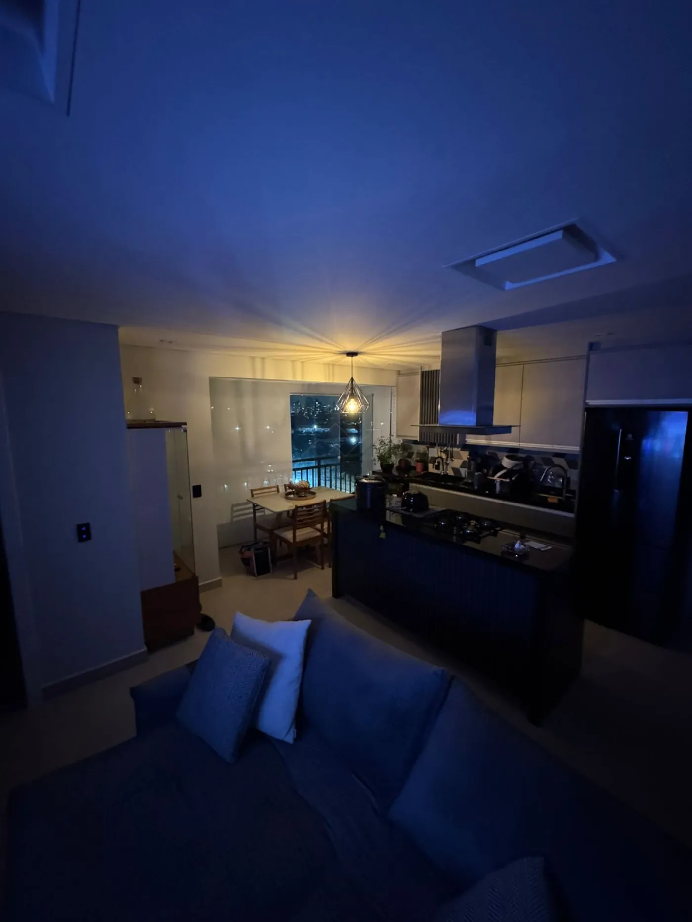 Varanda gourmet integrada à cozinha, sala e sala de jantar;