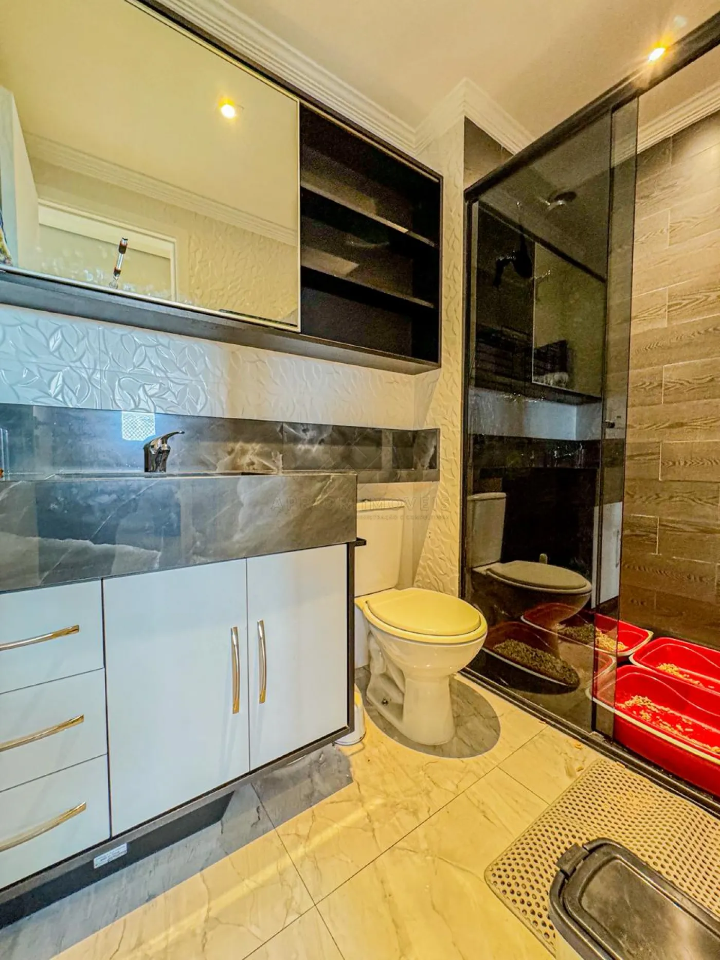 02 banheiros sendo um lavabo;