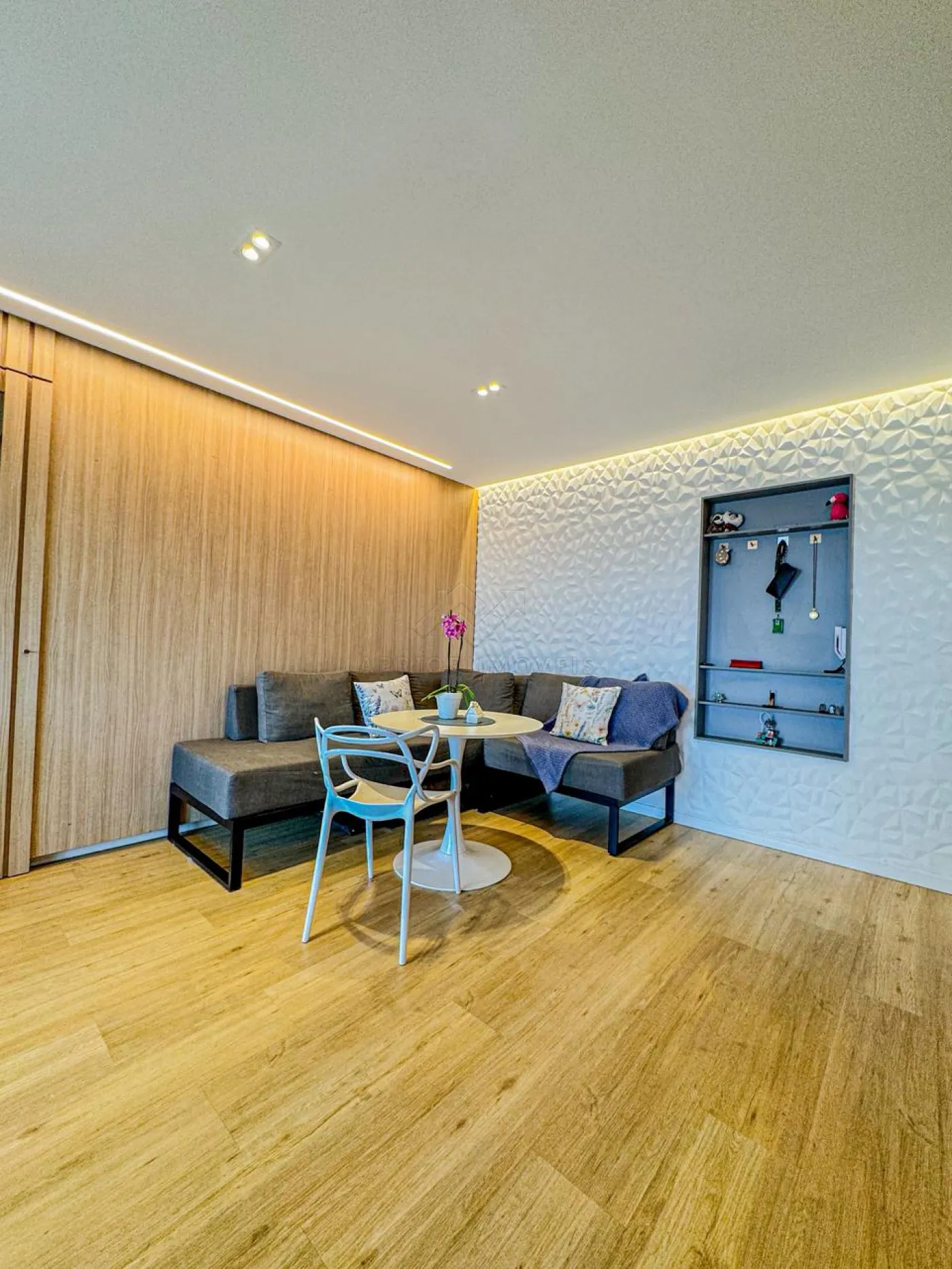 Sala dois ambientes com teto rebaixado com led;