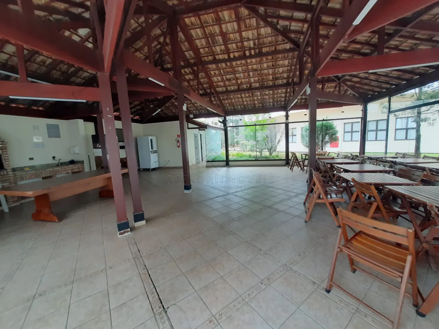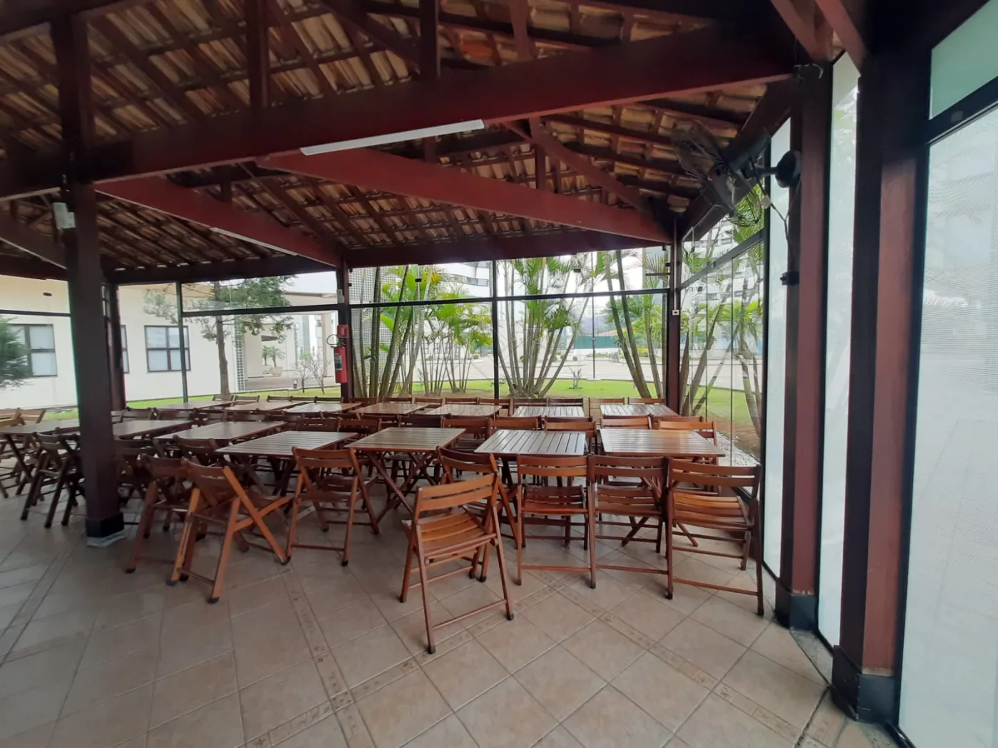 Sacada principal fechada com vidro, com 9,36m de comprimento.