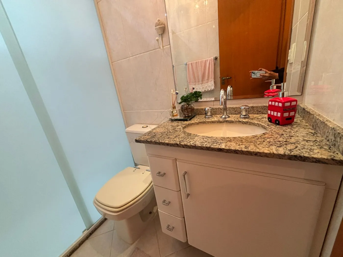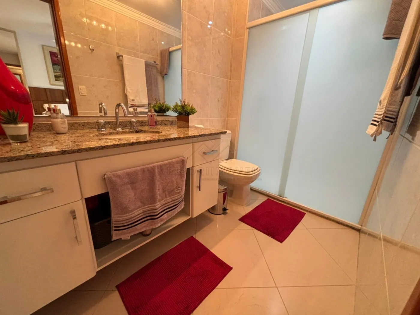 03 banheiros das suítes (iguais), com pias e gabinetes, torneiras de água quente, box de vidro, duchas e acessórios.