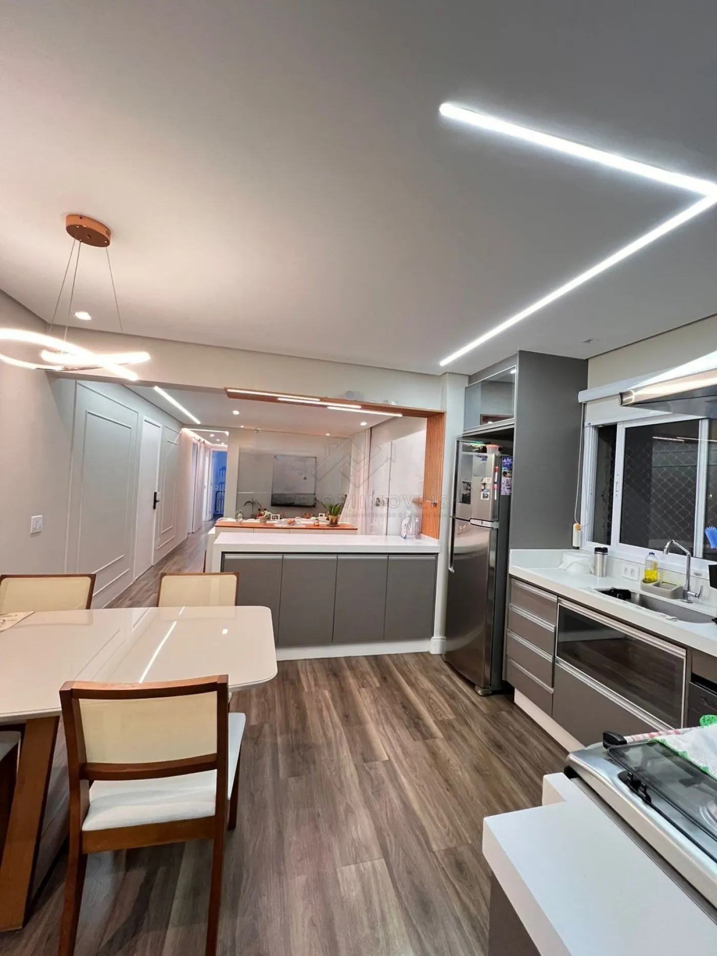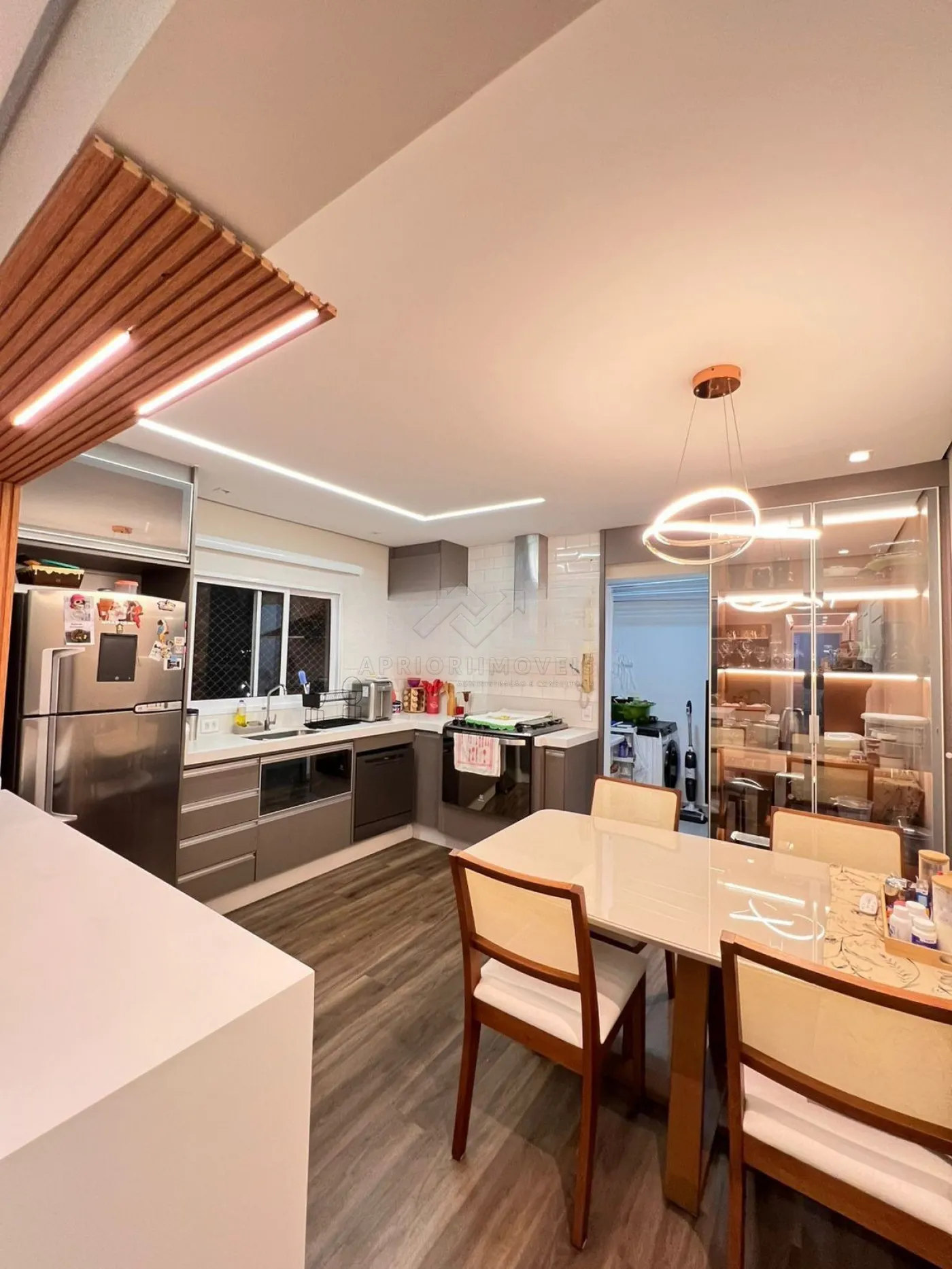 Cozinha com planejados, cooktop e forno