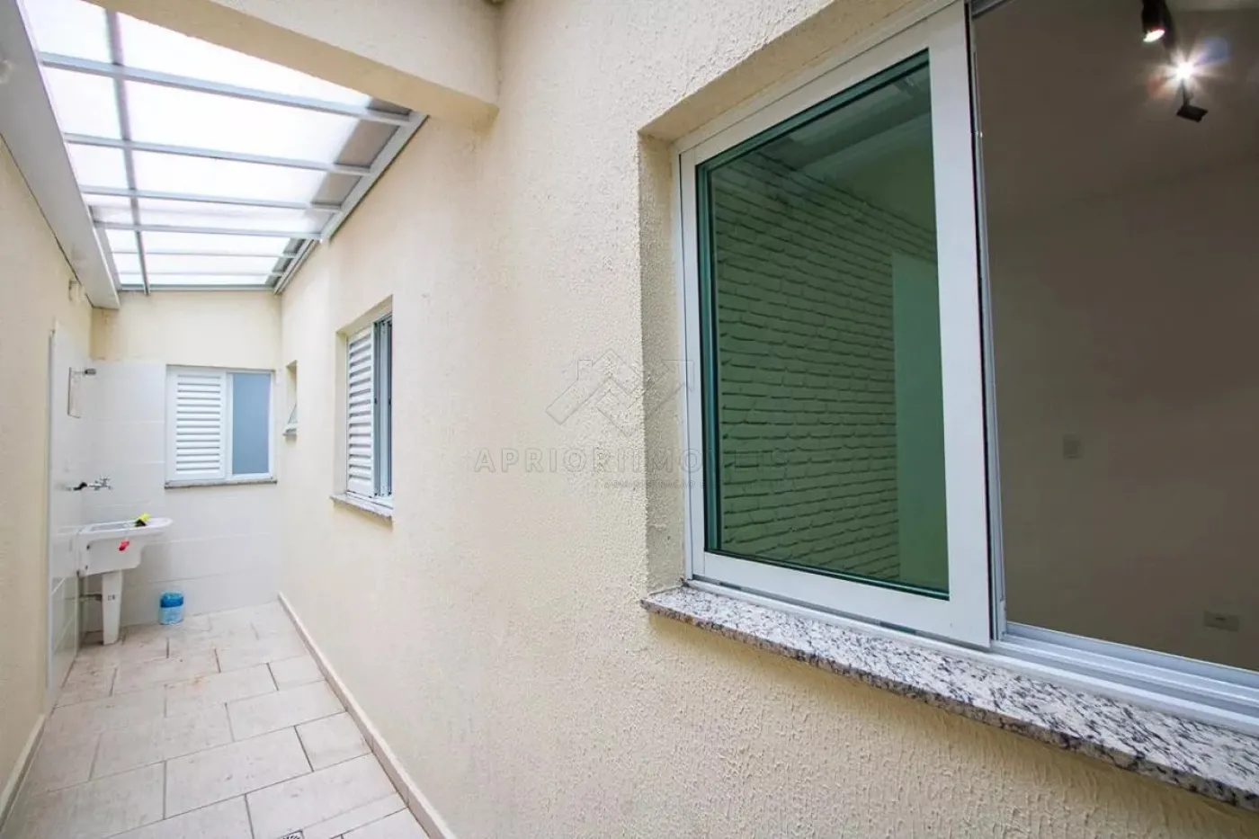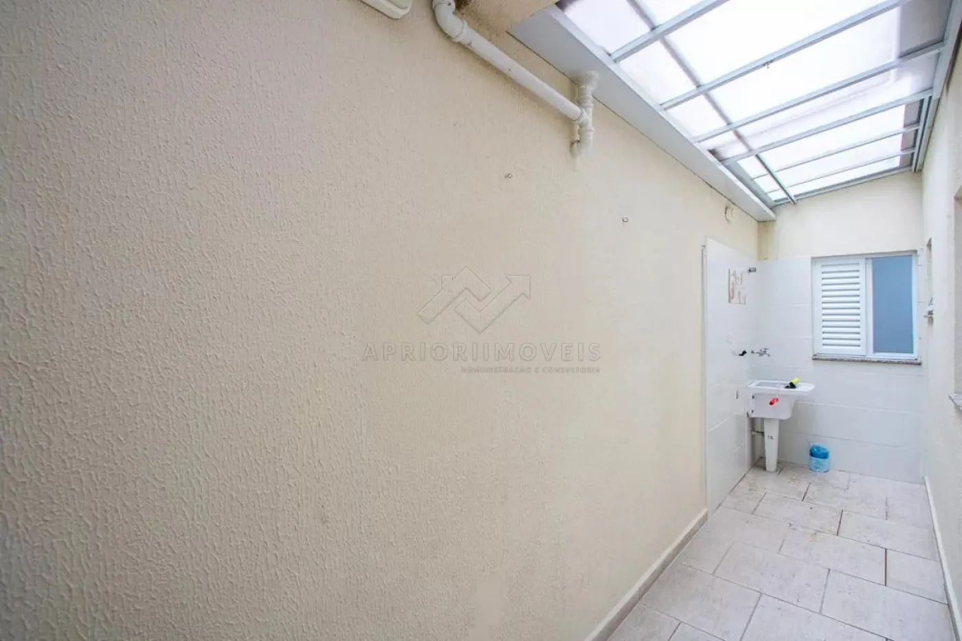 A área de serviço é coberta com policarbonato retrátil transparente, garantindo ótima ventilação natural e iluminação. O imóvel ainda conta com um quintal privativo de 10m², perfeito para momentos ao ar livre com privacidade.