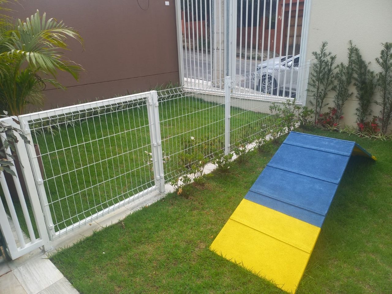 28. Pet place entregue com área 100% permeável em grama natural. Com brinquedos e circuito agility para seu pet brincar e praticar exercícios sem sair do condomínio a qualquer hora do dia.