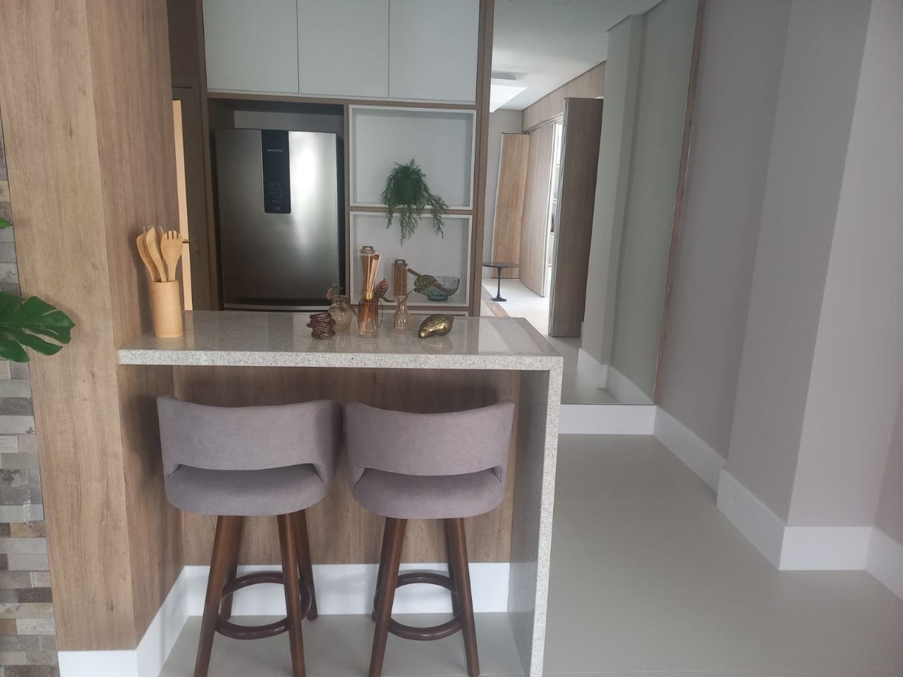 2. Hall de entrada social para cada uma das duas alas com iluminação e decoração sofisticada. Belo padrão de acabamento desde a entrada.