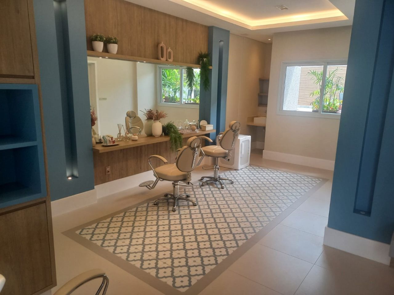 12. Belíssimo e amplo beauty care com estrutura completa: mesa de manicure, lavatórios, cadeiras e nichos para os produtos. Entregue com ar-condicionado instalado.