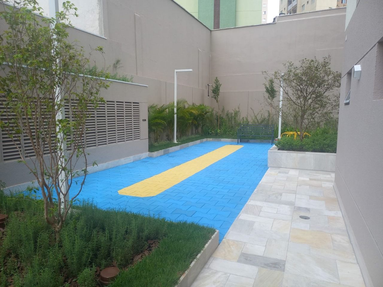26. Playground com pista de hoverboard, brinquedos multi-play e piso emborrachado, mais segurança em caso de queda. Todos brinquedos instalados atendem as normas de segurança.