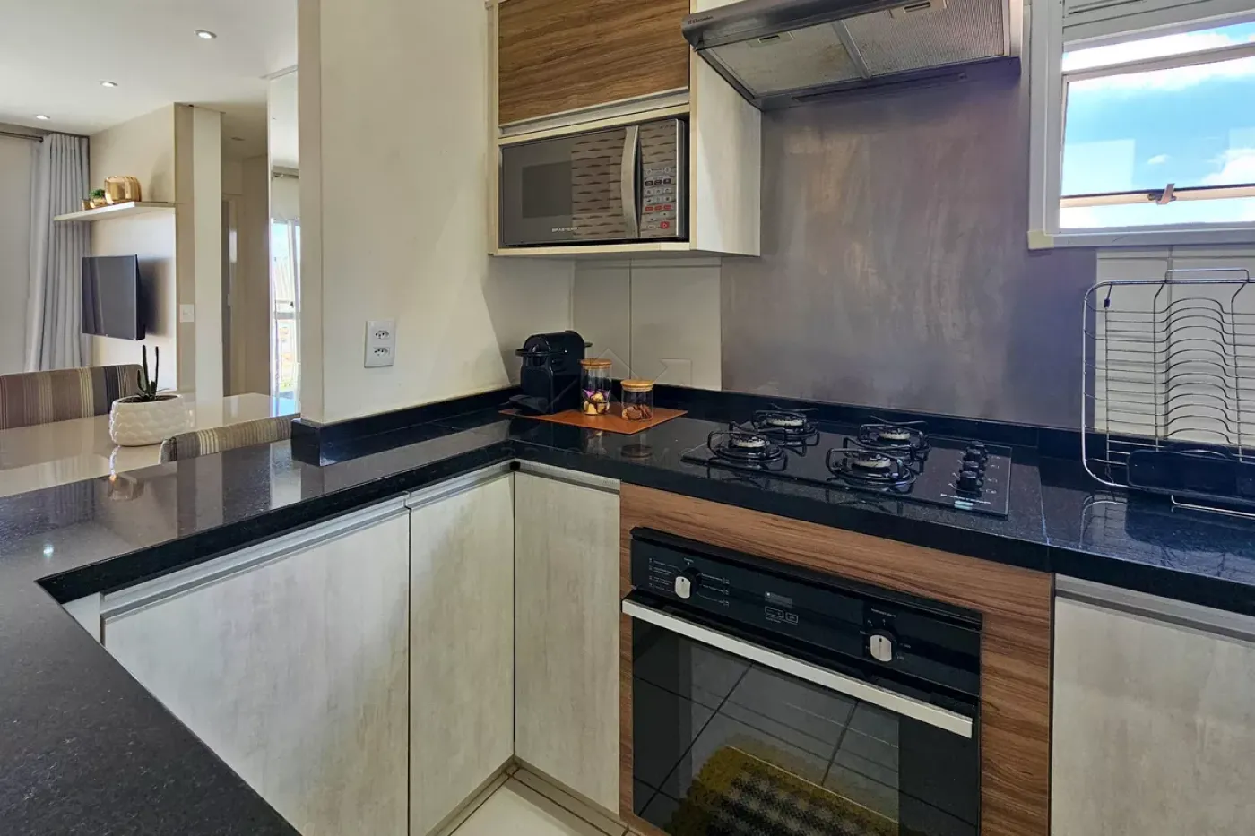 Cozinha com armários e Área de serviços;