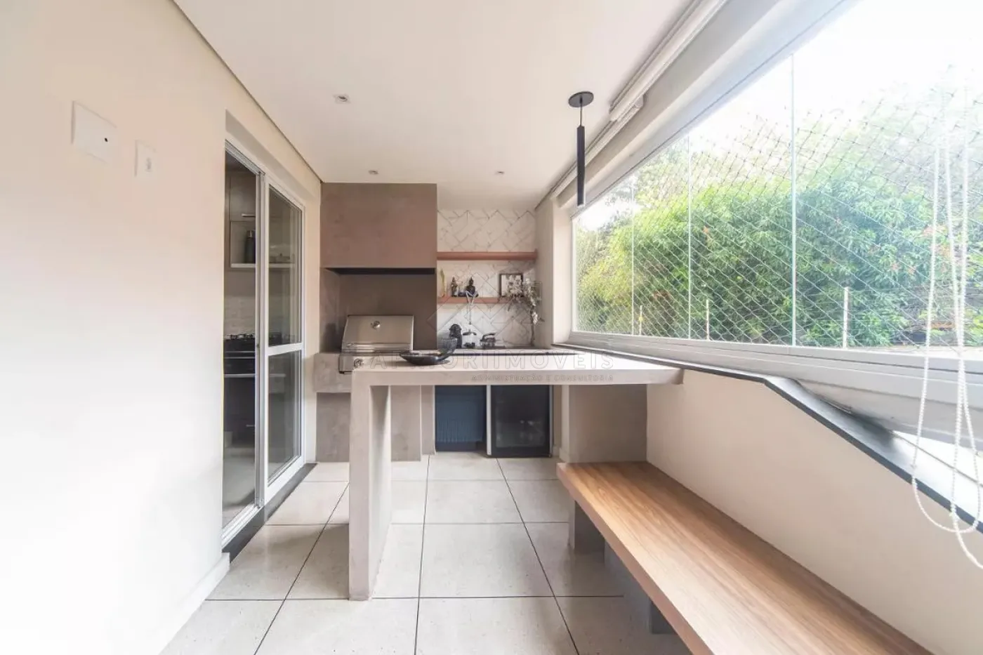 Varanda gourmet com conceito aberto;