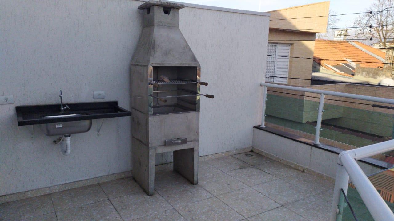 Cobertura com parte coberta, churrasqueira e lavabo.