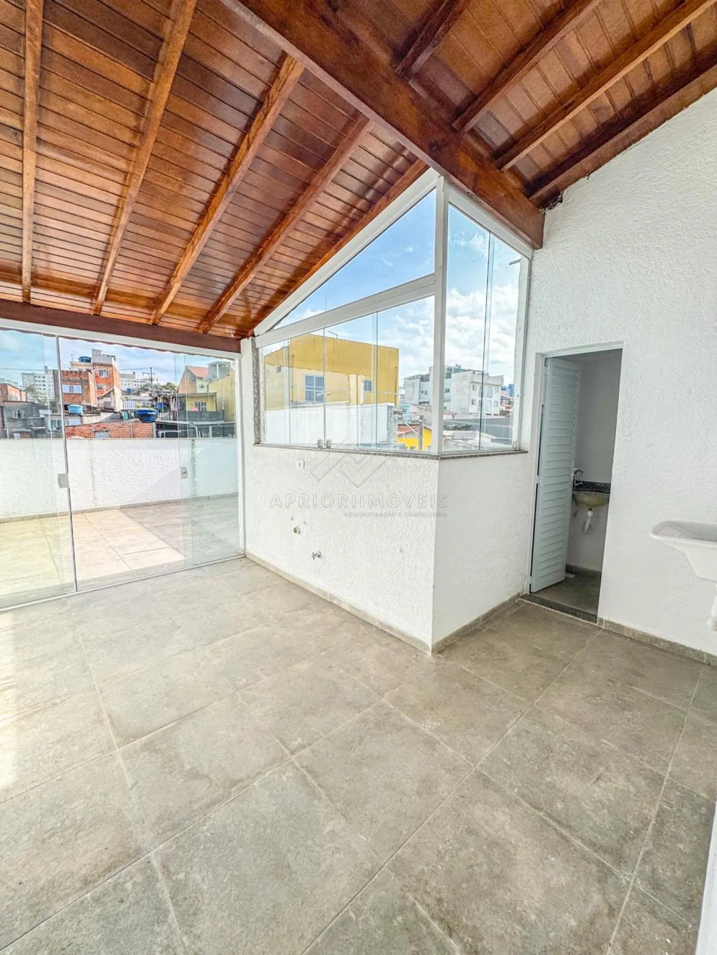 Cobertura parcialmente fechada em vidro;