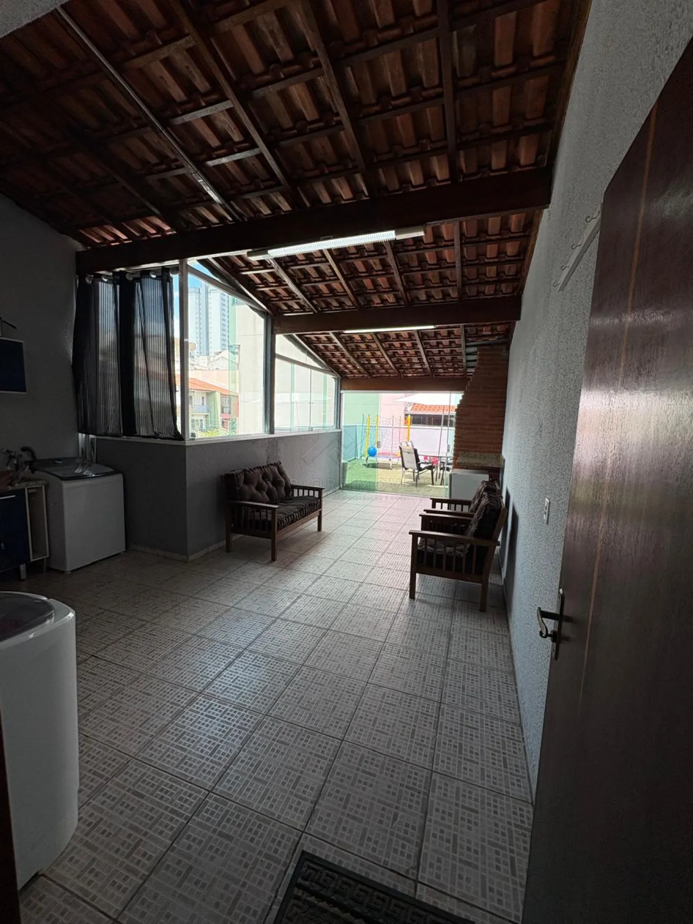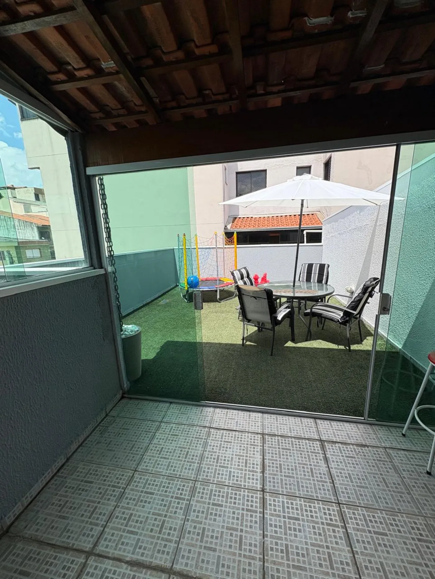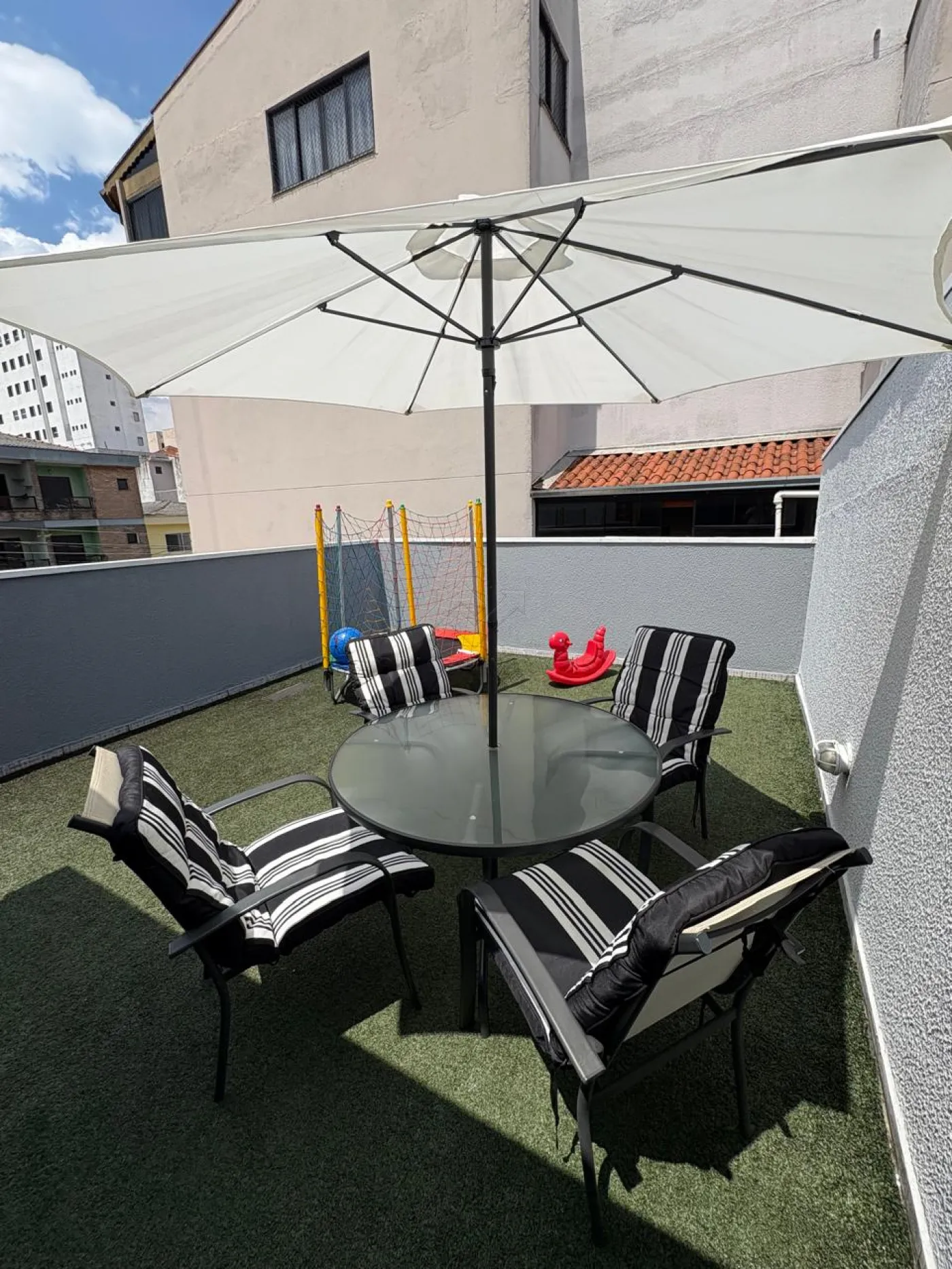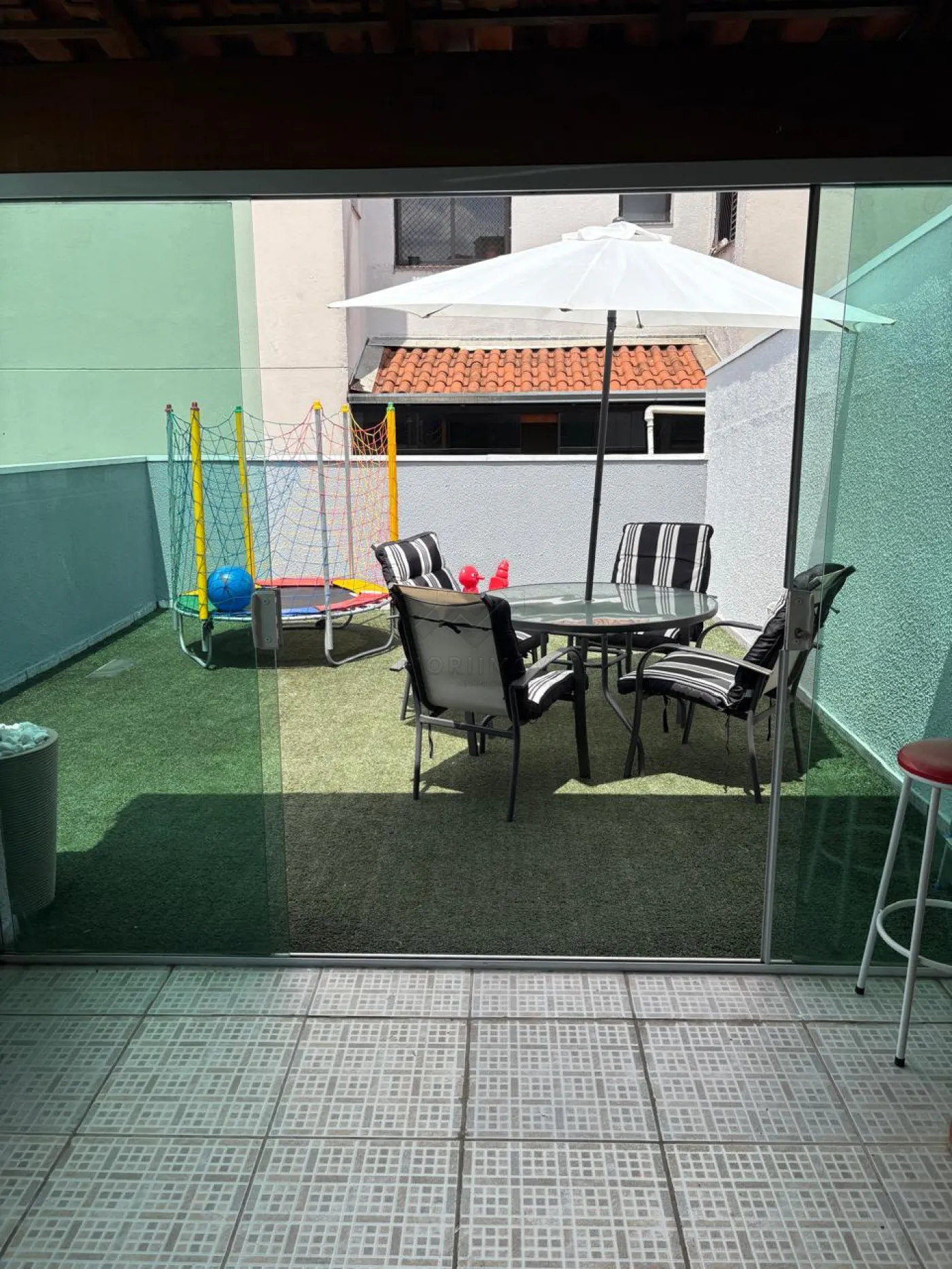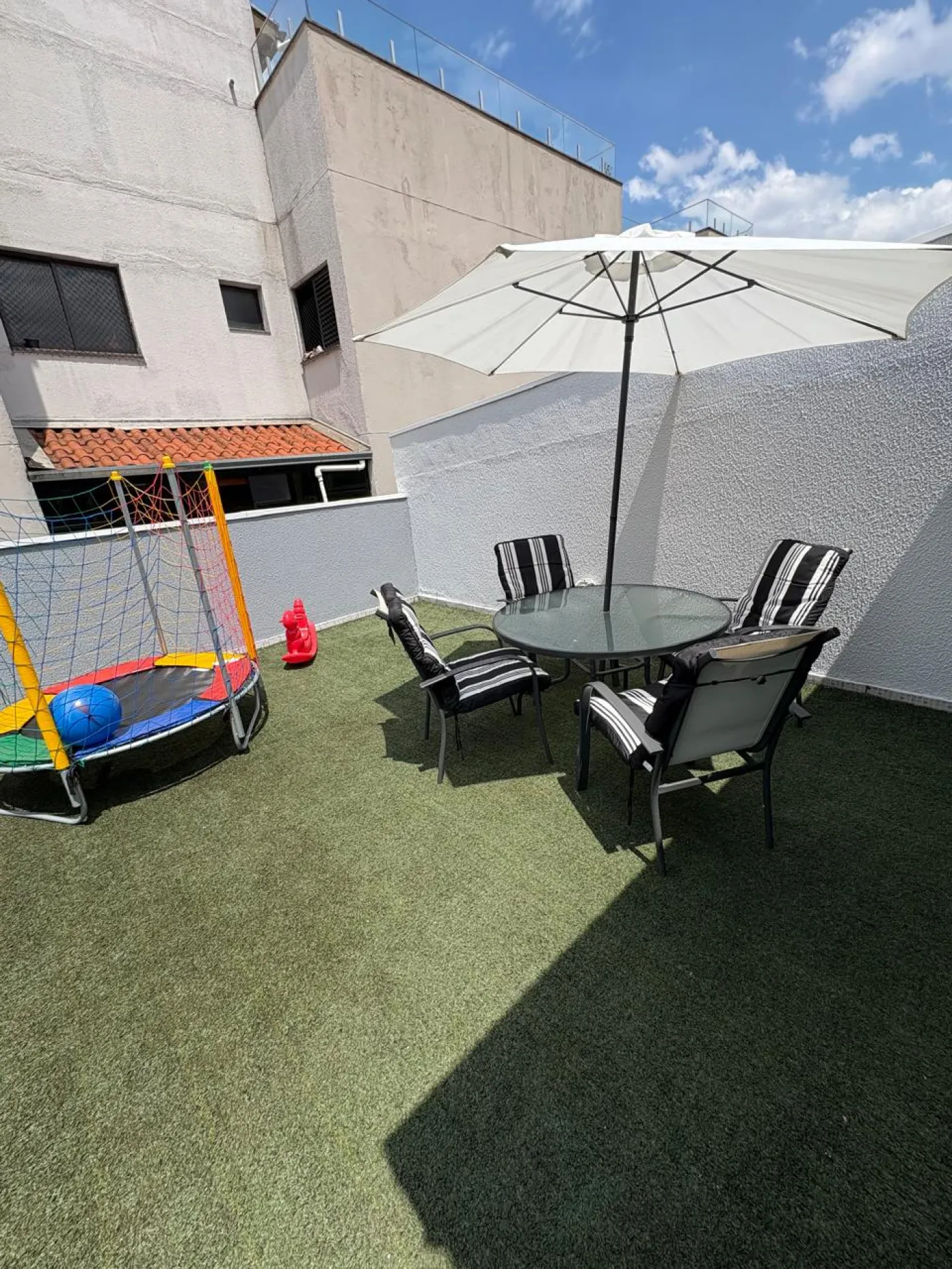Área aberta com grama sintética na cobertura;