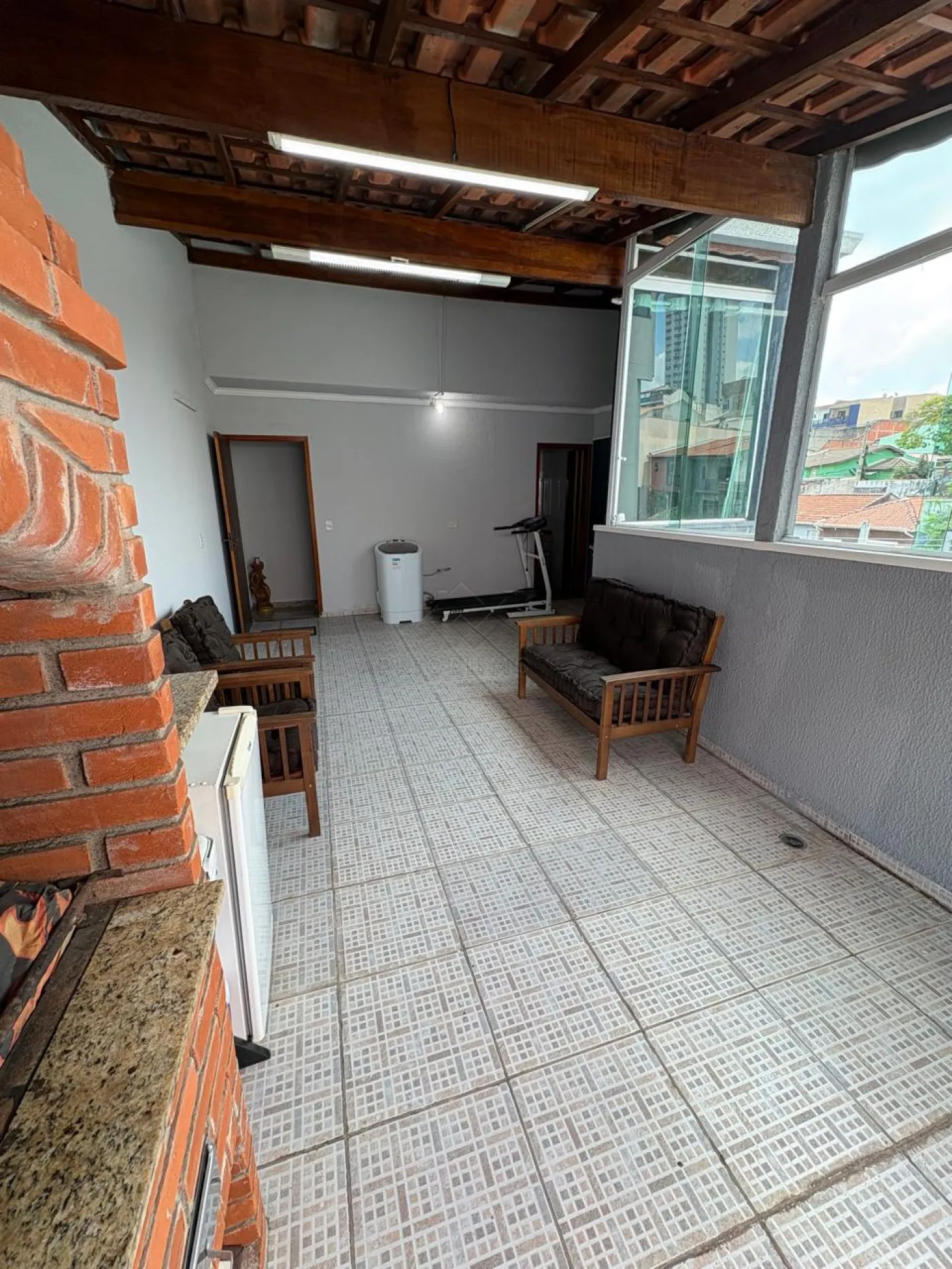 Cobertura parcialmente fechada em vidros;