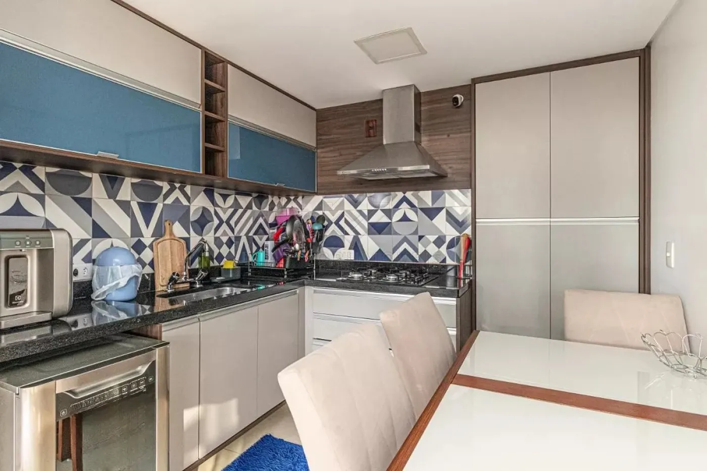 Cobertura com acesso interno, já equipada com churrasqueira, cozinha completa.