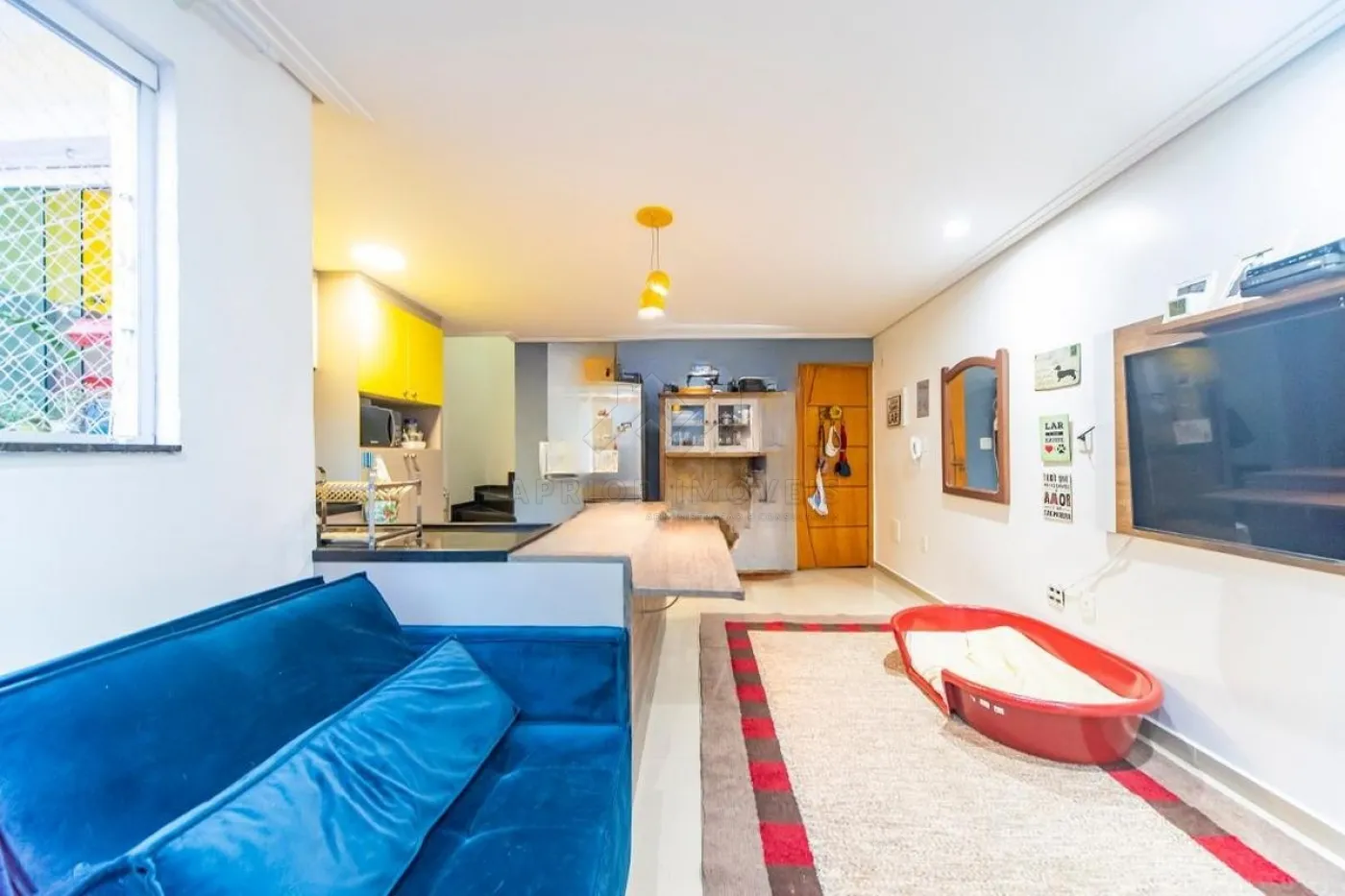 Sala ampla dois ambientes, cozinha integrada com ilha;