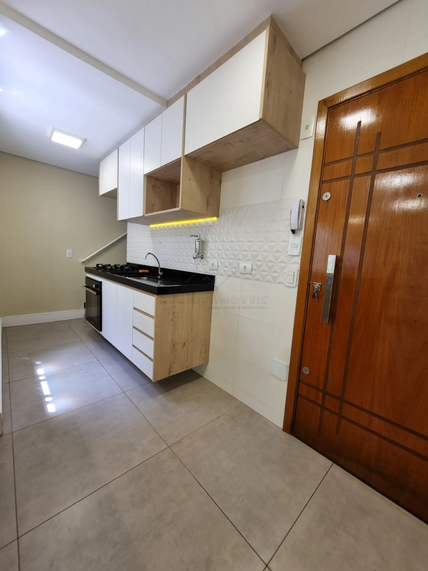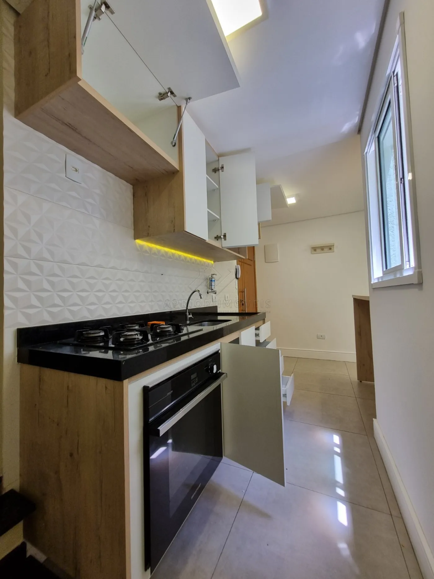 Cozinha com planejados, fogão e forno;