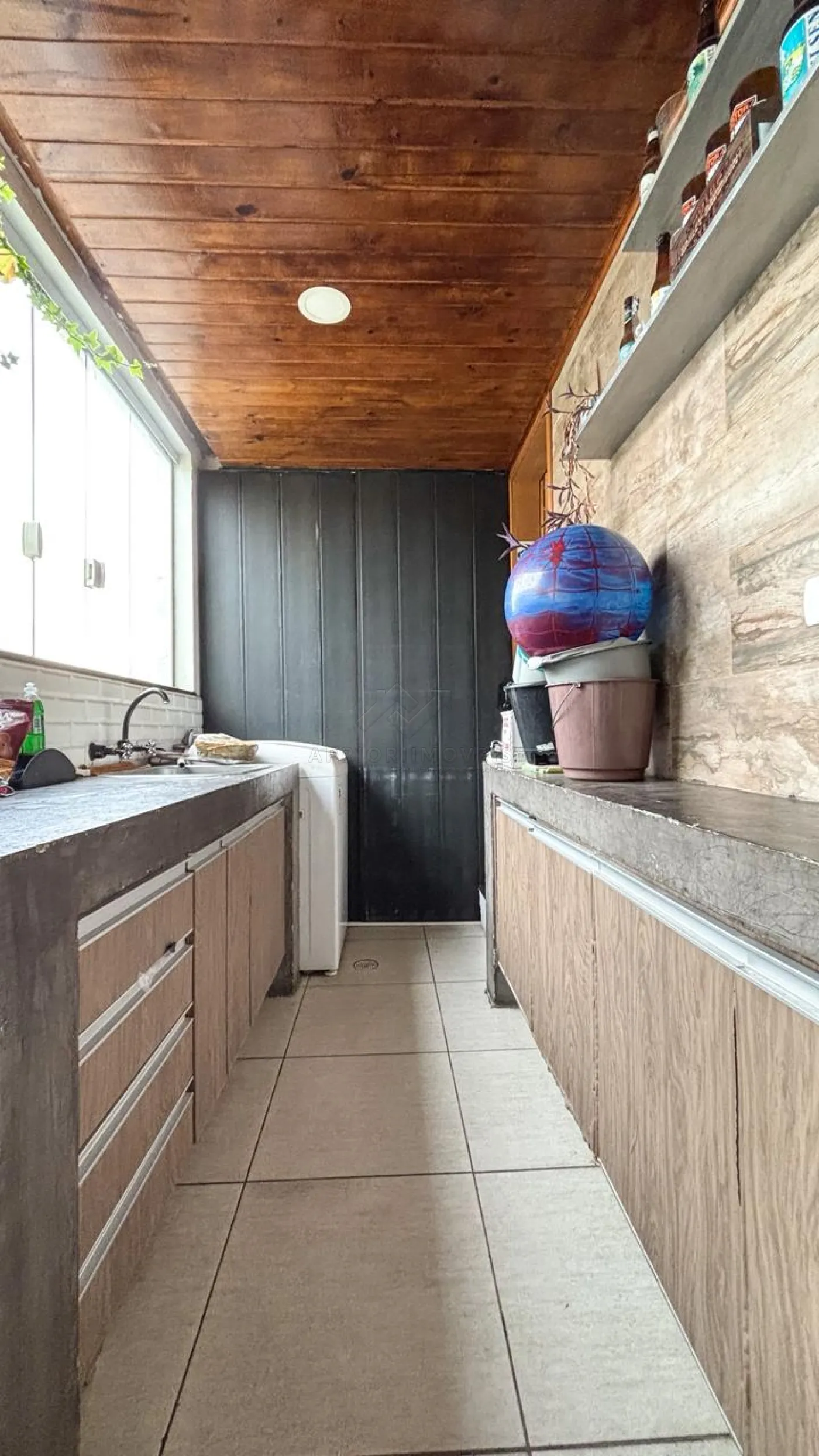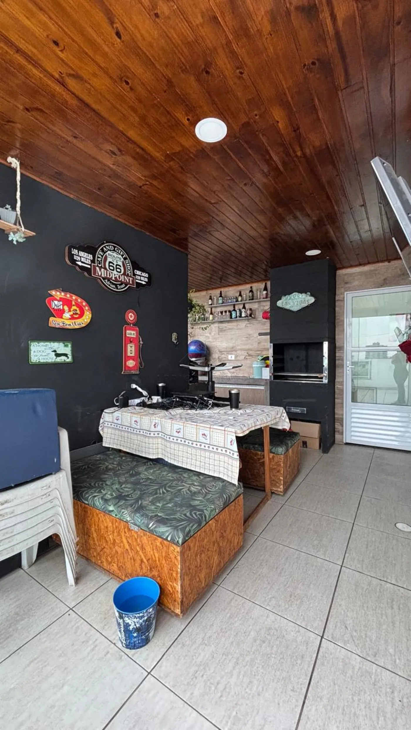 Cobertura já parcialmente fechada, churrasqueira e armários