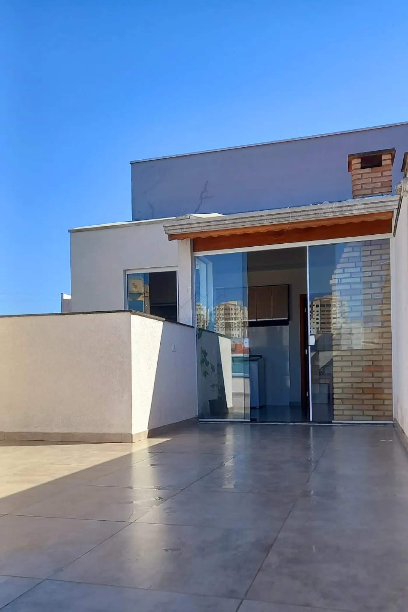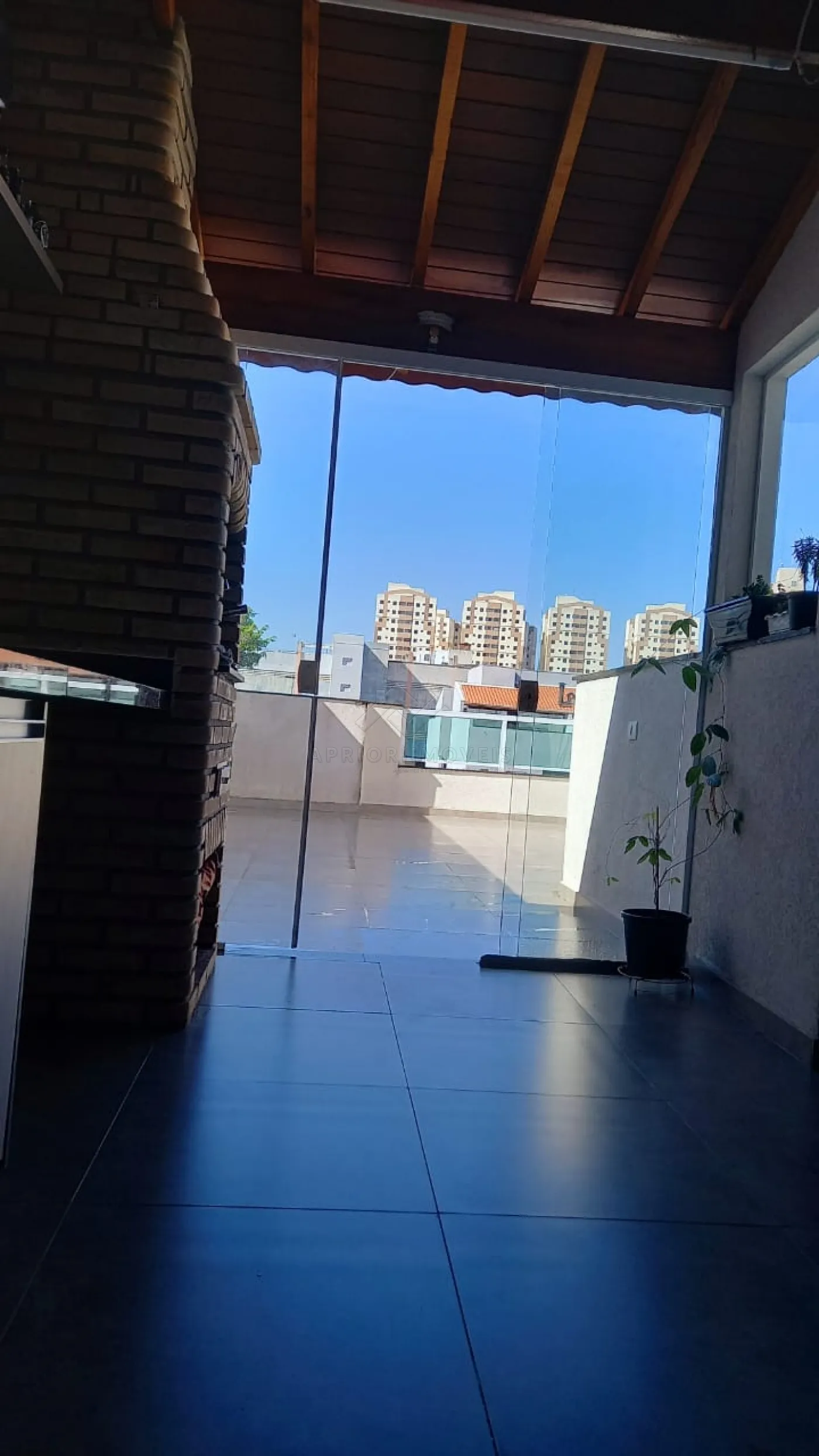 Cobertura com banheiro, churrasqueira, fechamento de vidro;