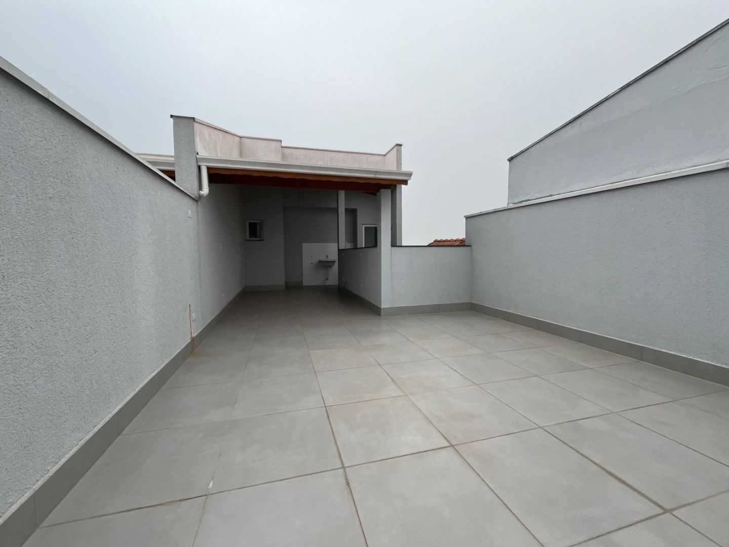 Terraço parcialmente coberto com ponto de banheiro;