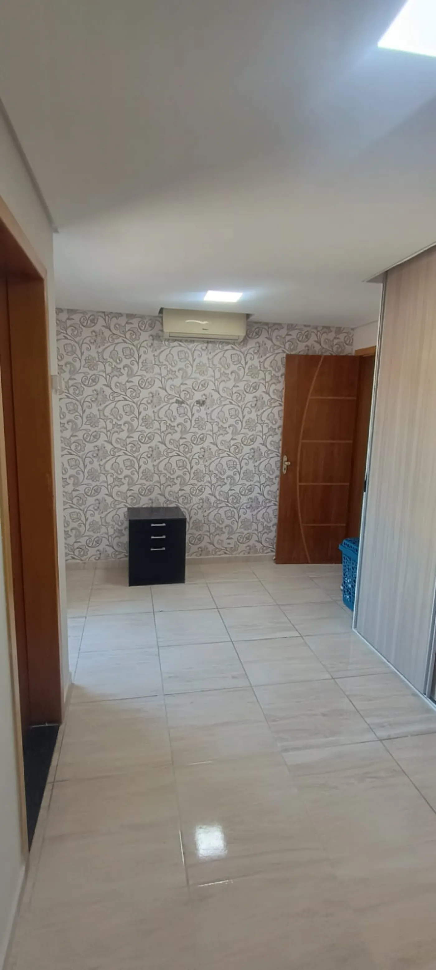 Teto rebaixado de gesso em todos os ambientes com iluminação em lead, ar condicionado, piso porcelanato;