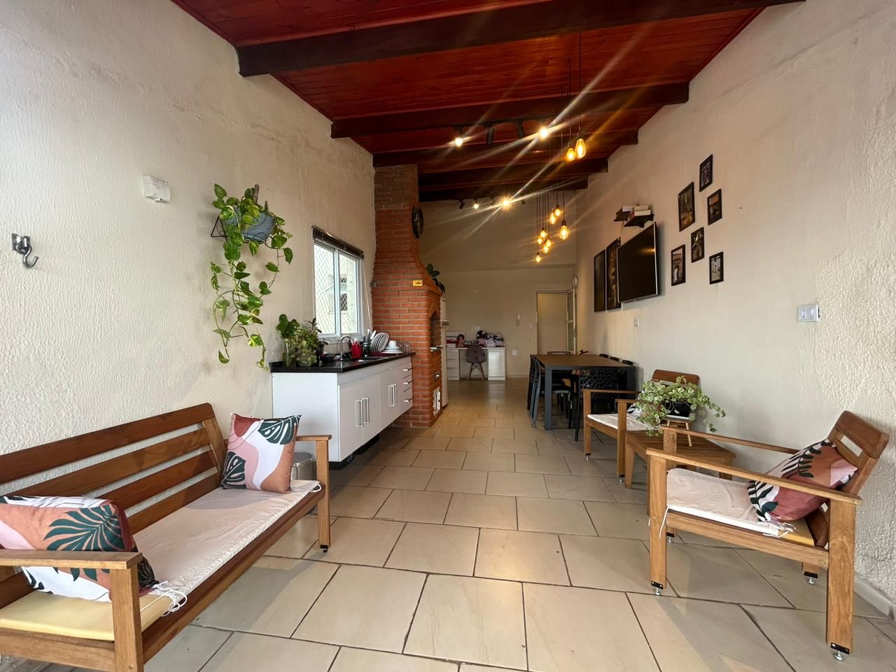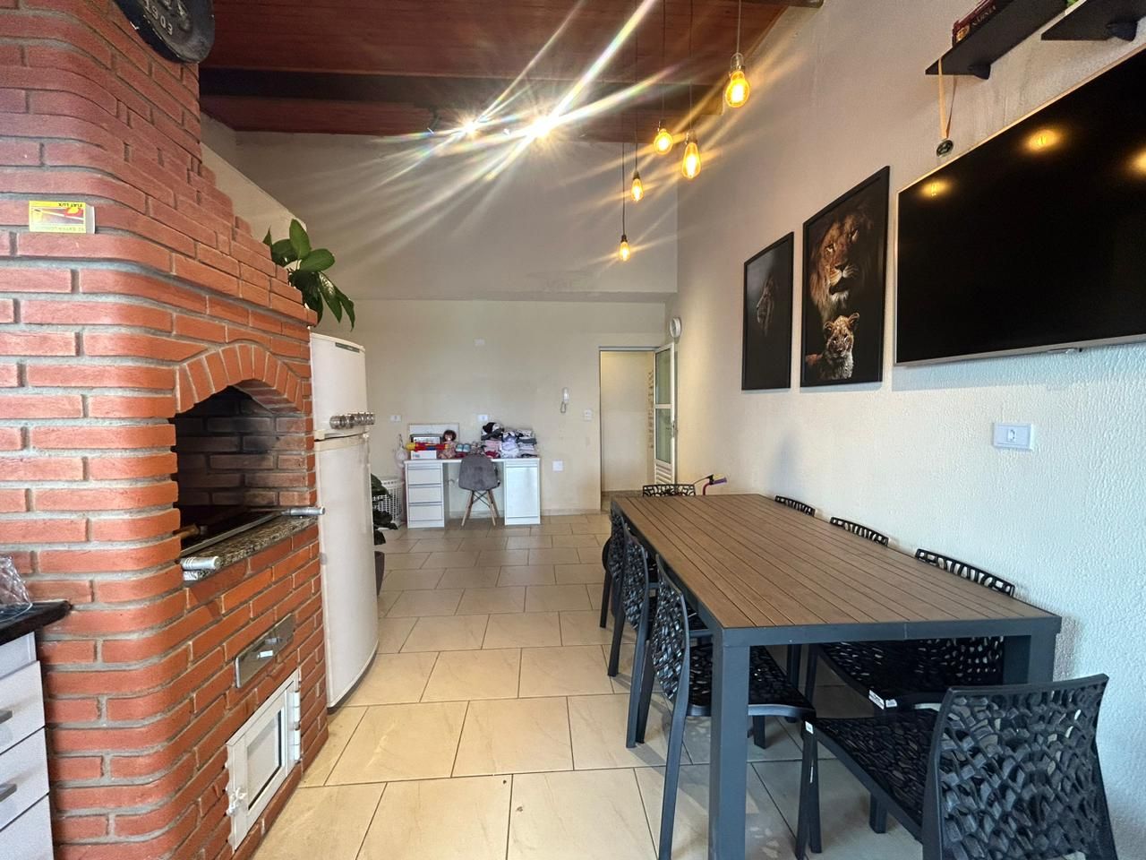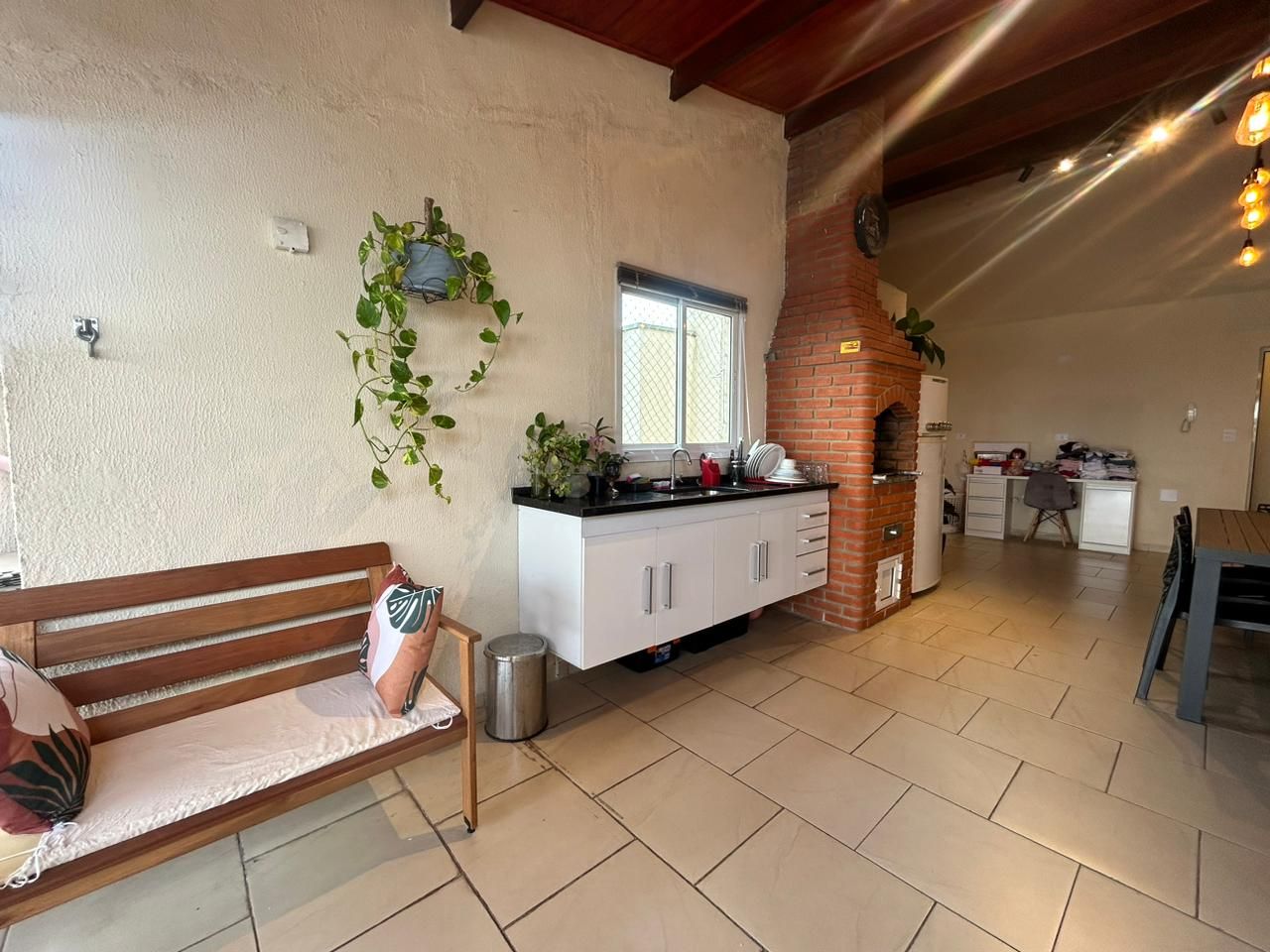 Área gourmet com churrasqueira, pia e lavabo;