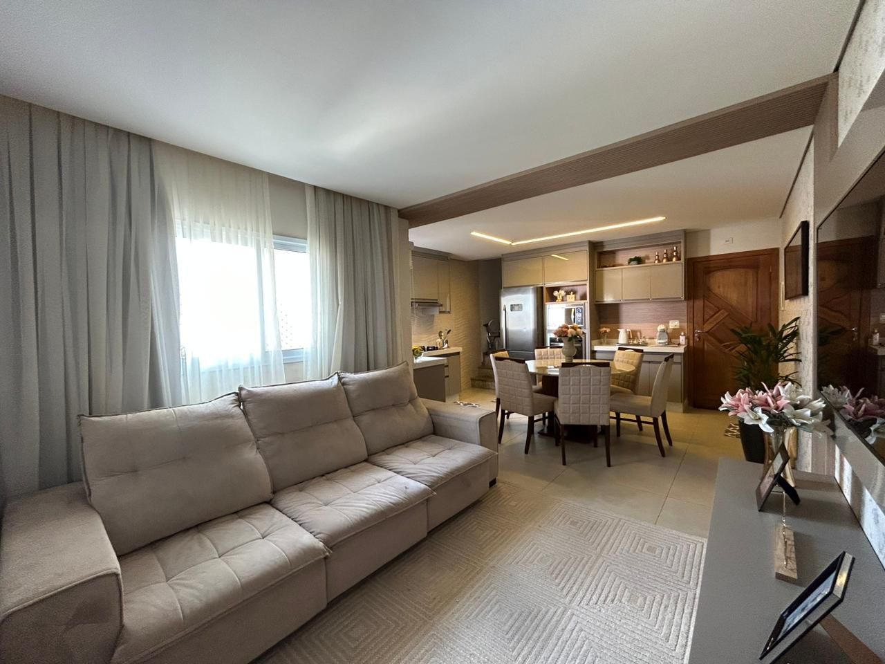 Sala de estar integrada com sala de jantar;