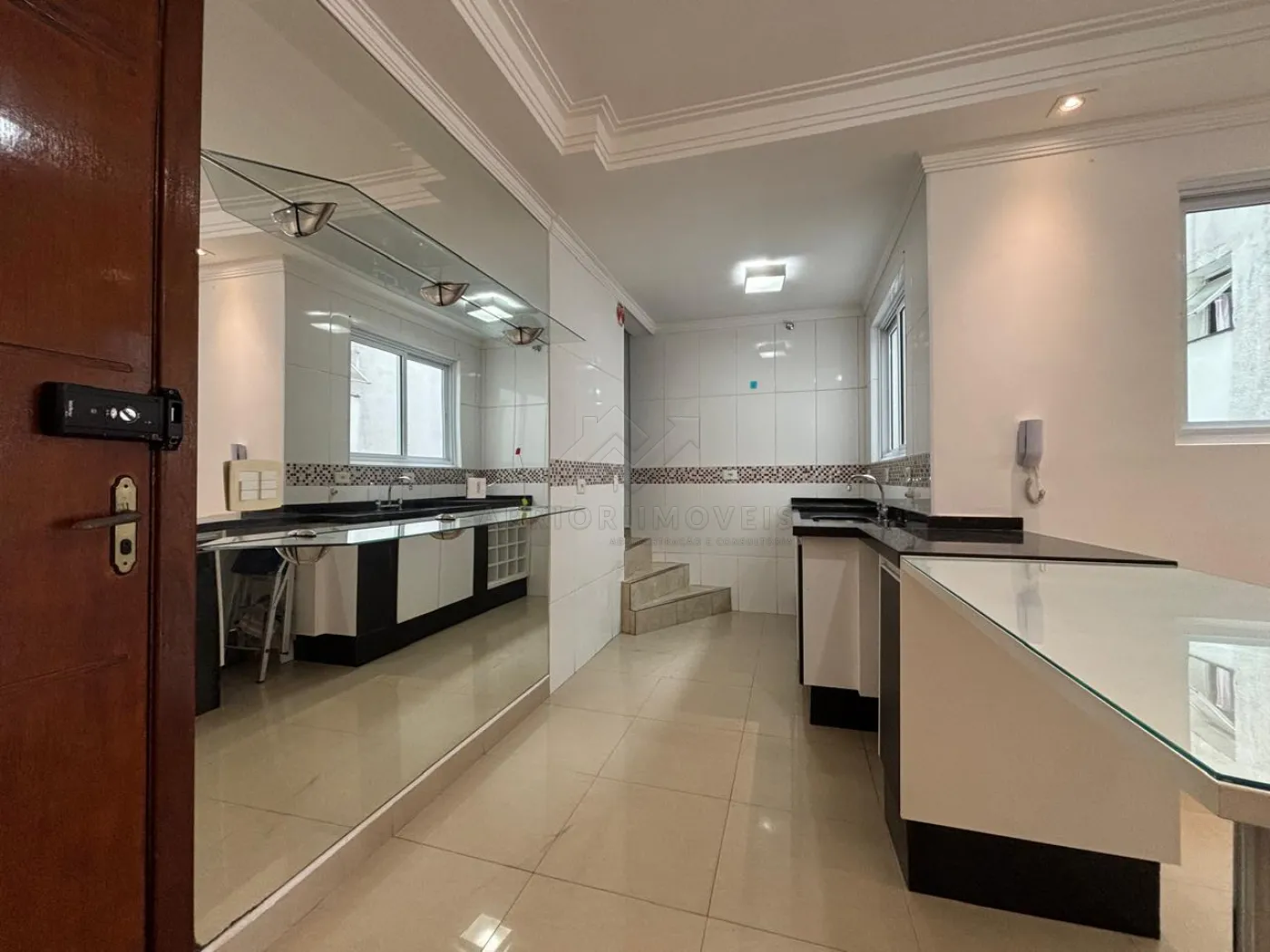 Cobertura com acesso interno e fechada em vidro com área gourmet planejada.