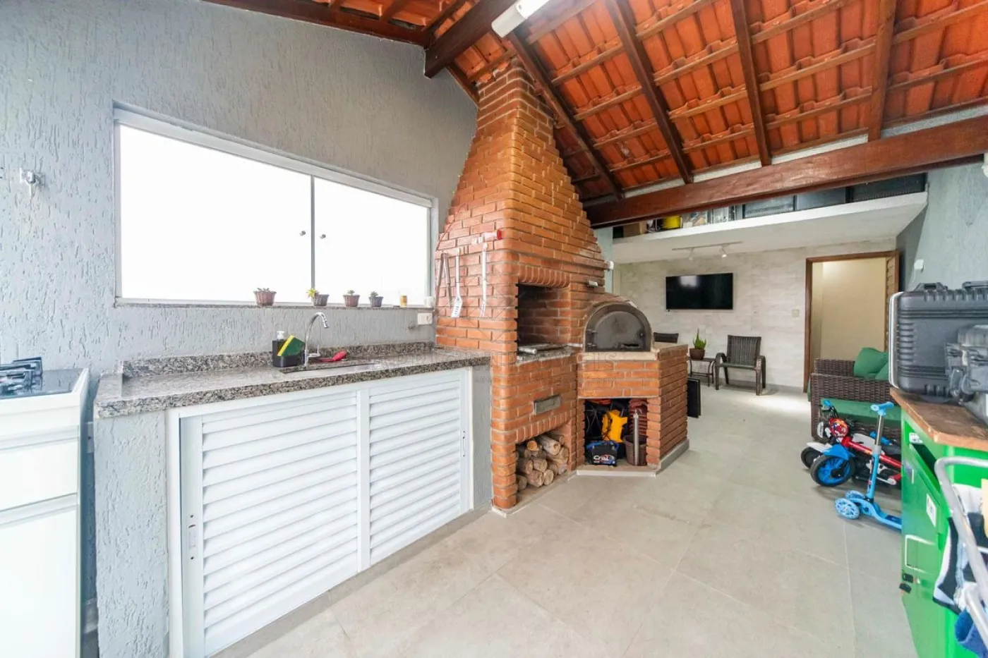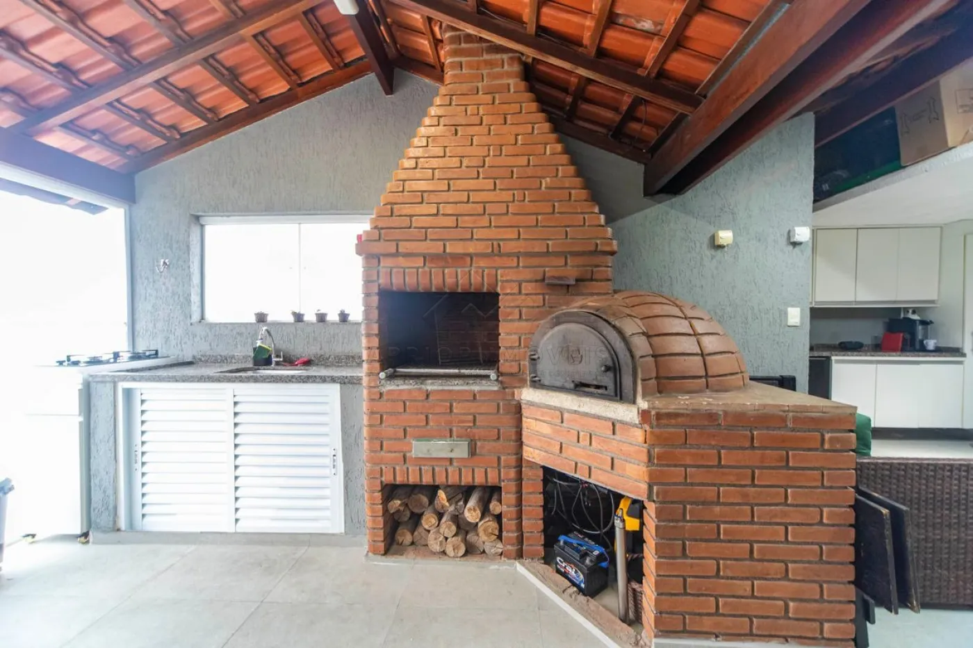 Área gourmet com churrasqueira e forno de pizza;