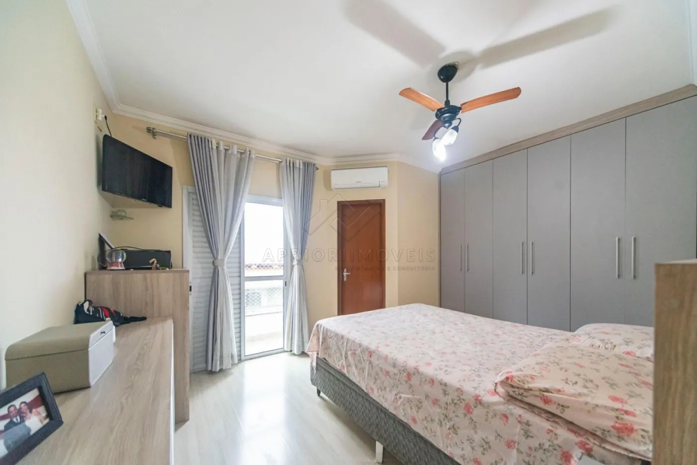 Suíte master com planejados e sacada e ar condicionado;