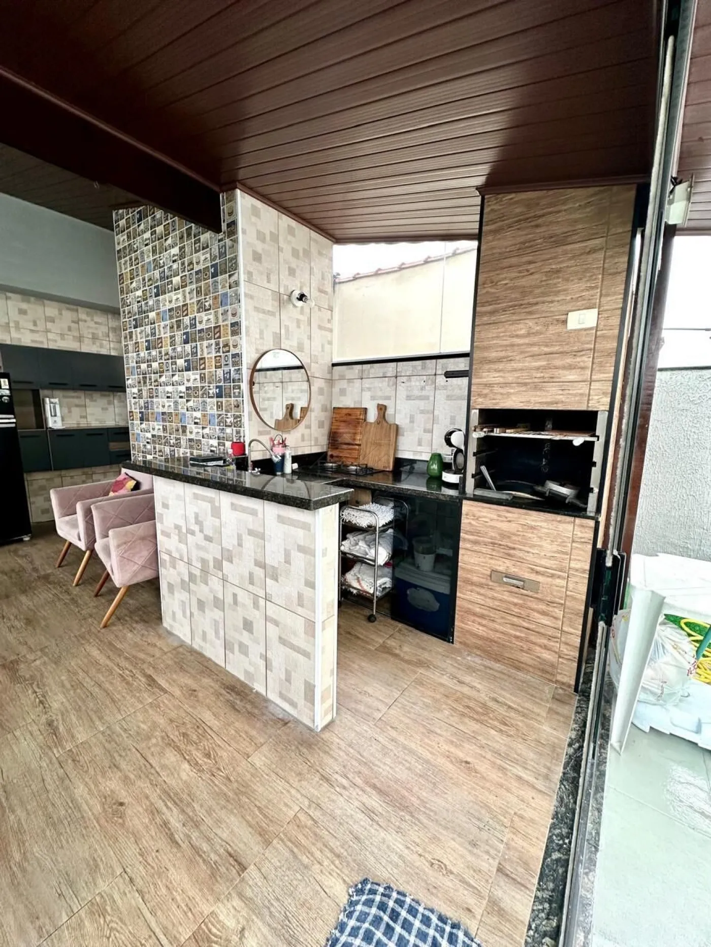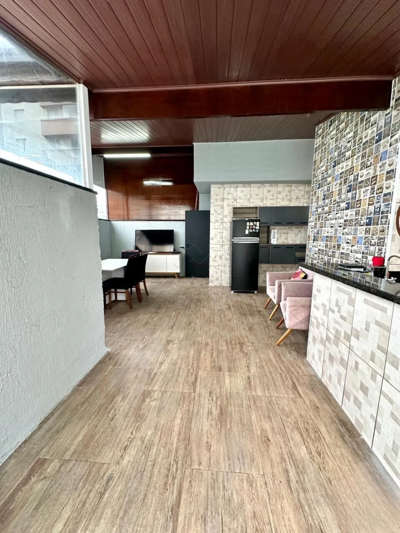 Área de cobertura decorada, com churrasqueira, fechamento em vidro e vista privilegiada;