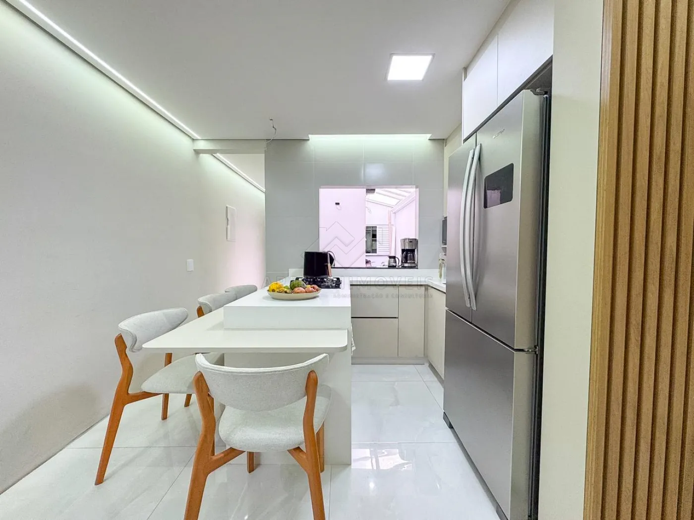 Cozinha com planejados contendo forno, cooktop e ilha;