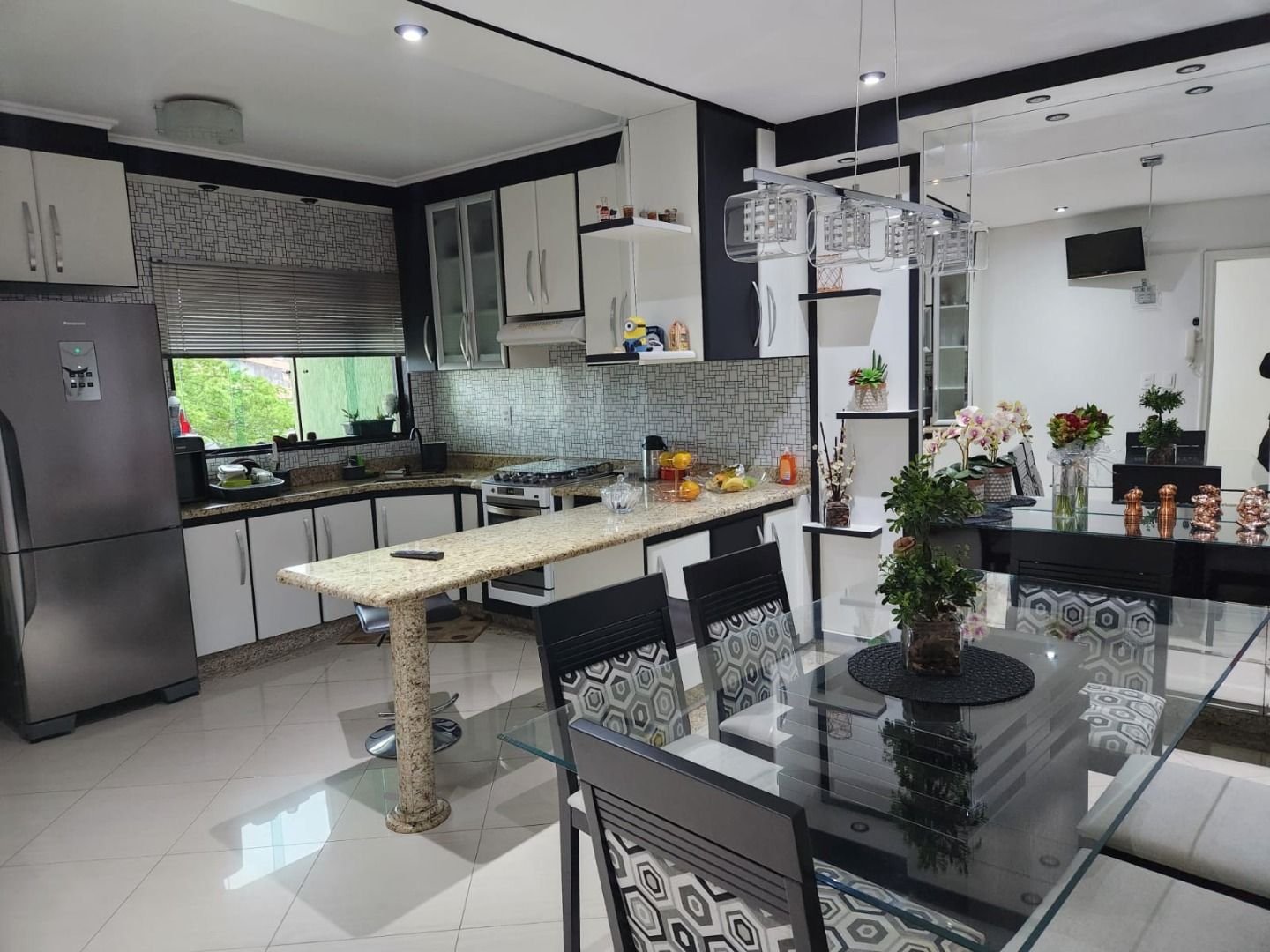 Cozinha com planejados e fogão;