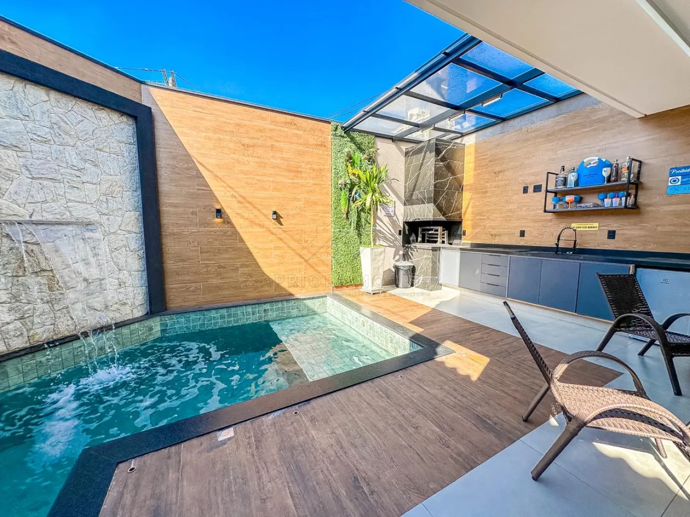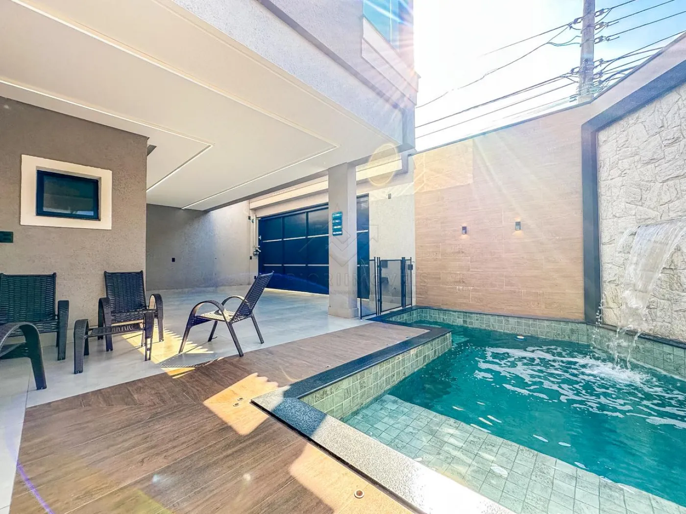 Piscina em alvenaria com cascata e infra p/ aquecimento