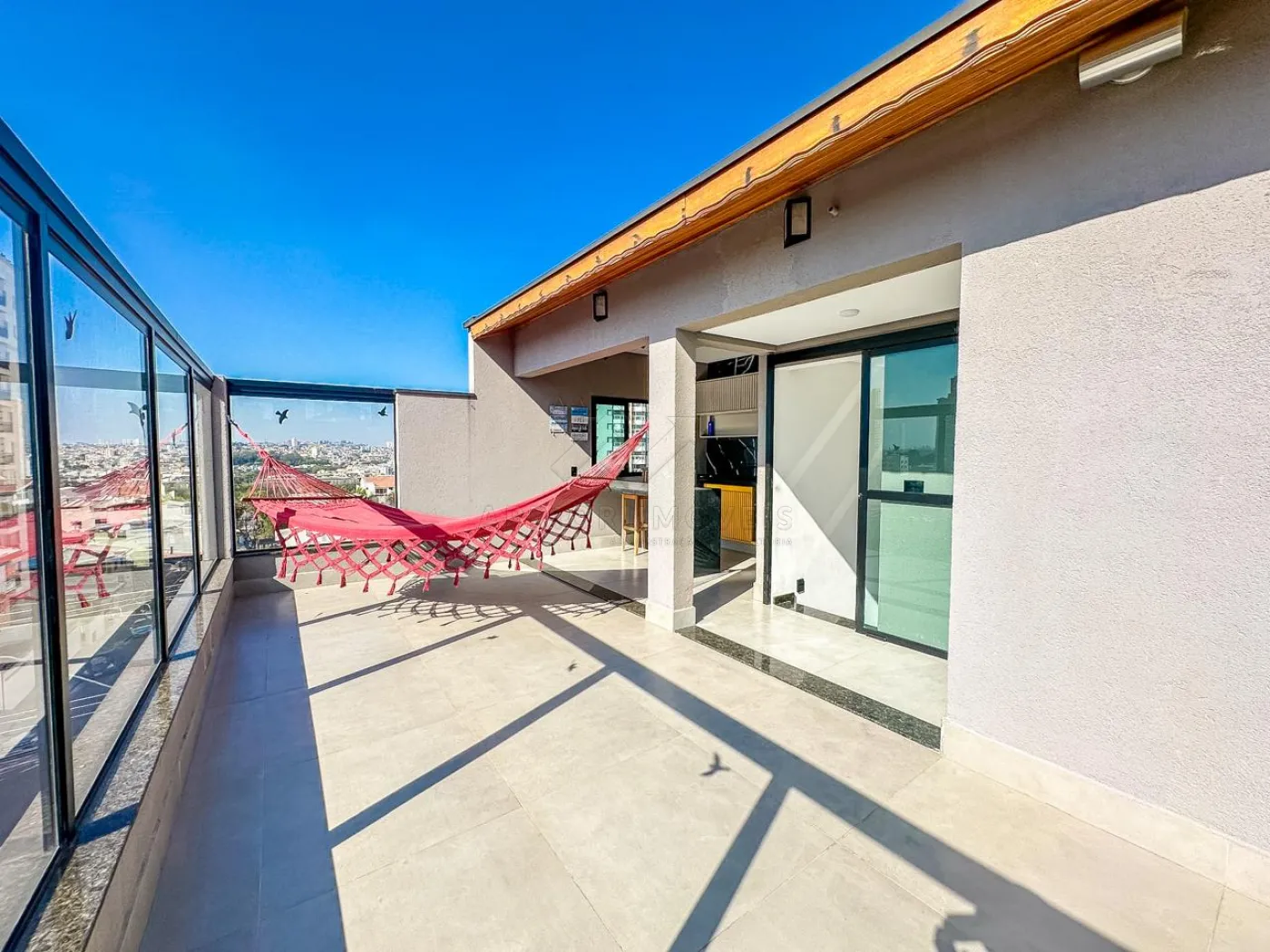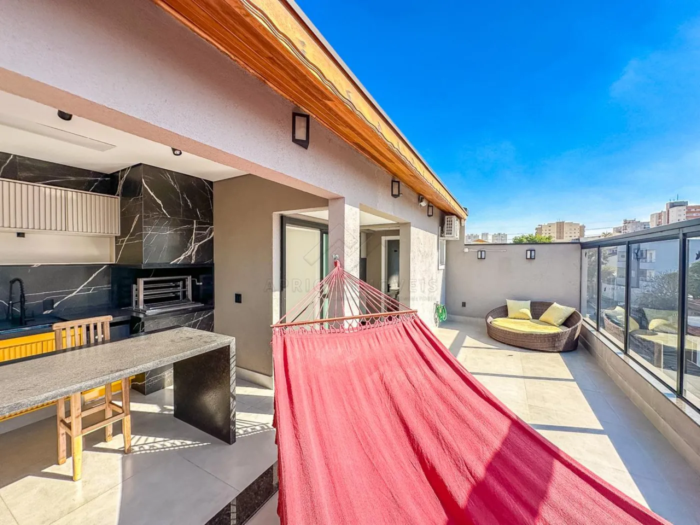 Último pavimento: Dispõe de uma cobertura com churrasqueira e balcão com banquetas, lavabo, área de serviço e solarium com uma vista livre e fenomenal para o pôr do sol.