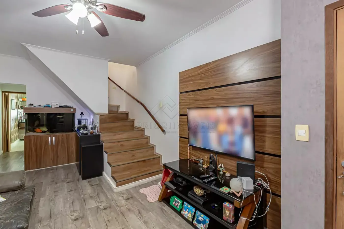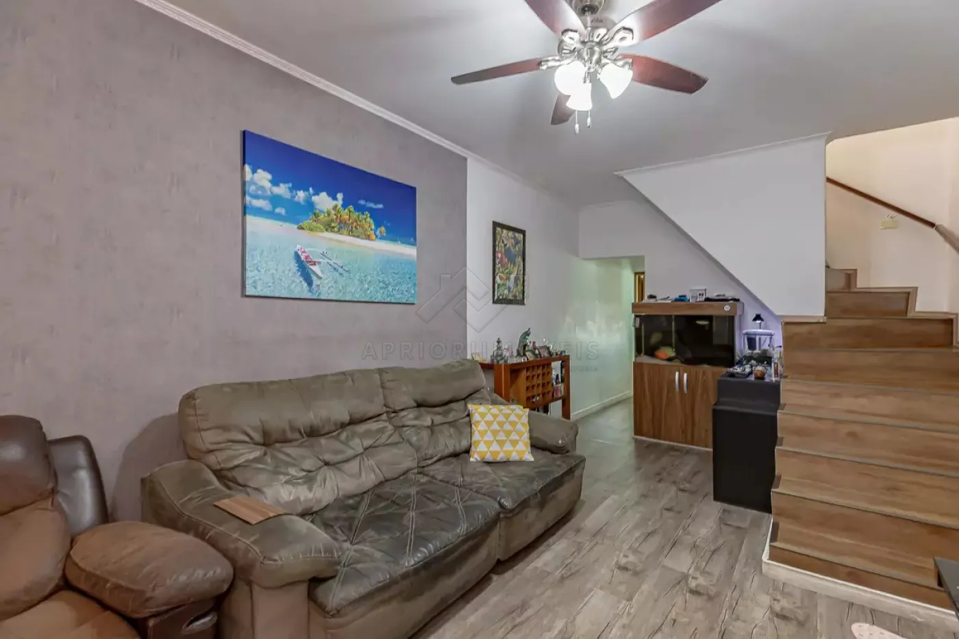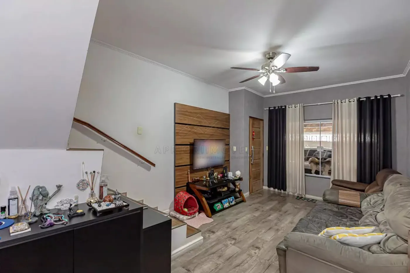 Sala dois ambientes com ventilador de teto;