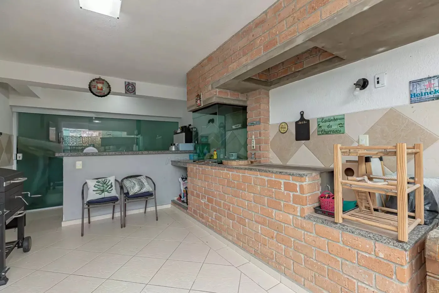 Quintal com área de churrasqueira e forno a lenha;