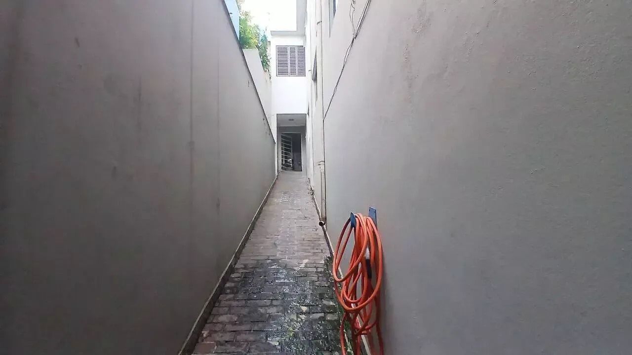 Casa com outra no quintal, água compartilhada e luz individual.