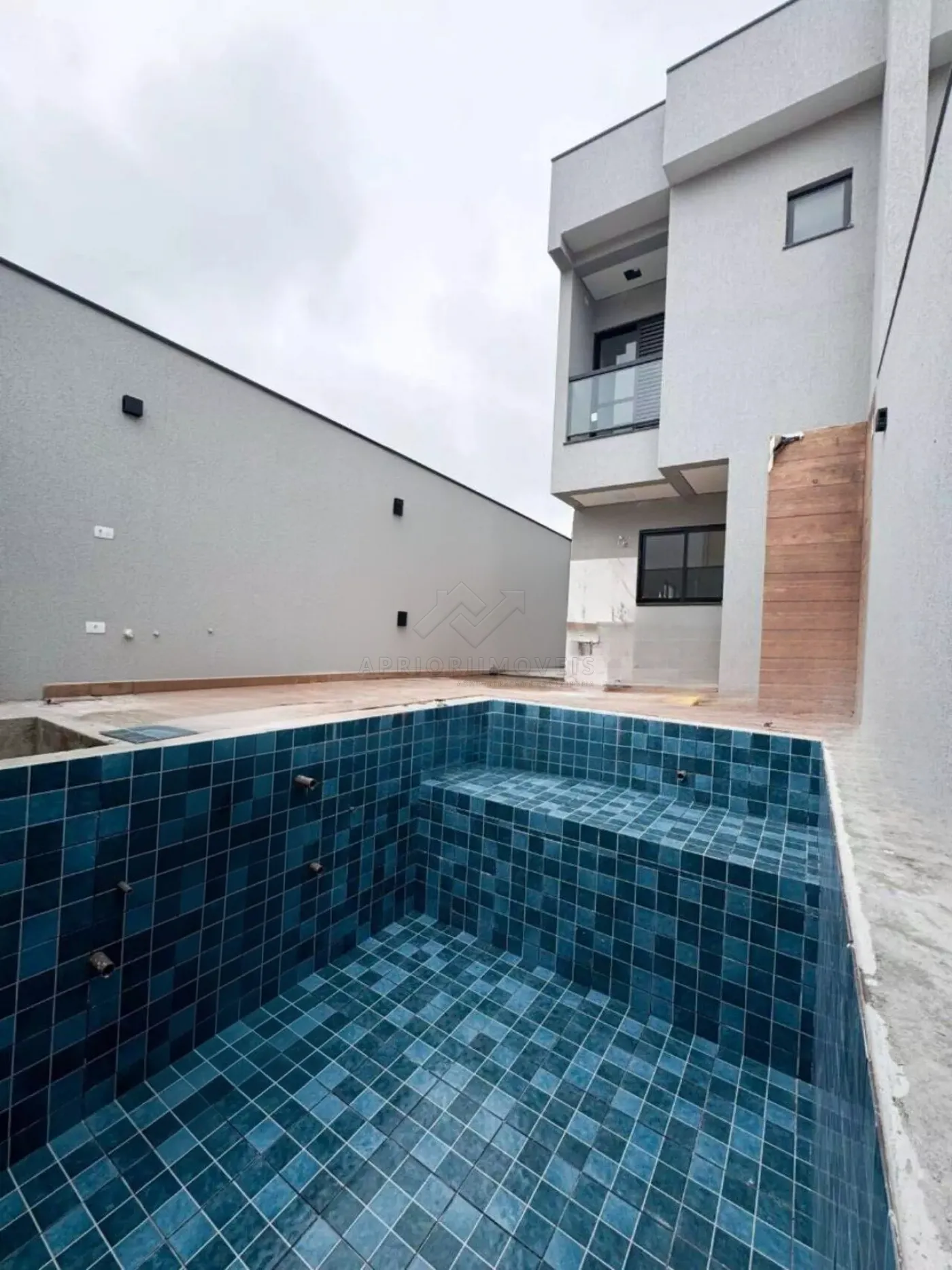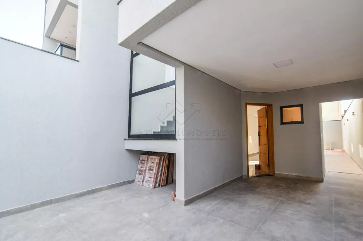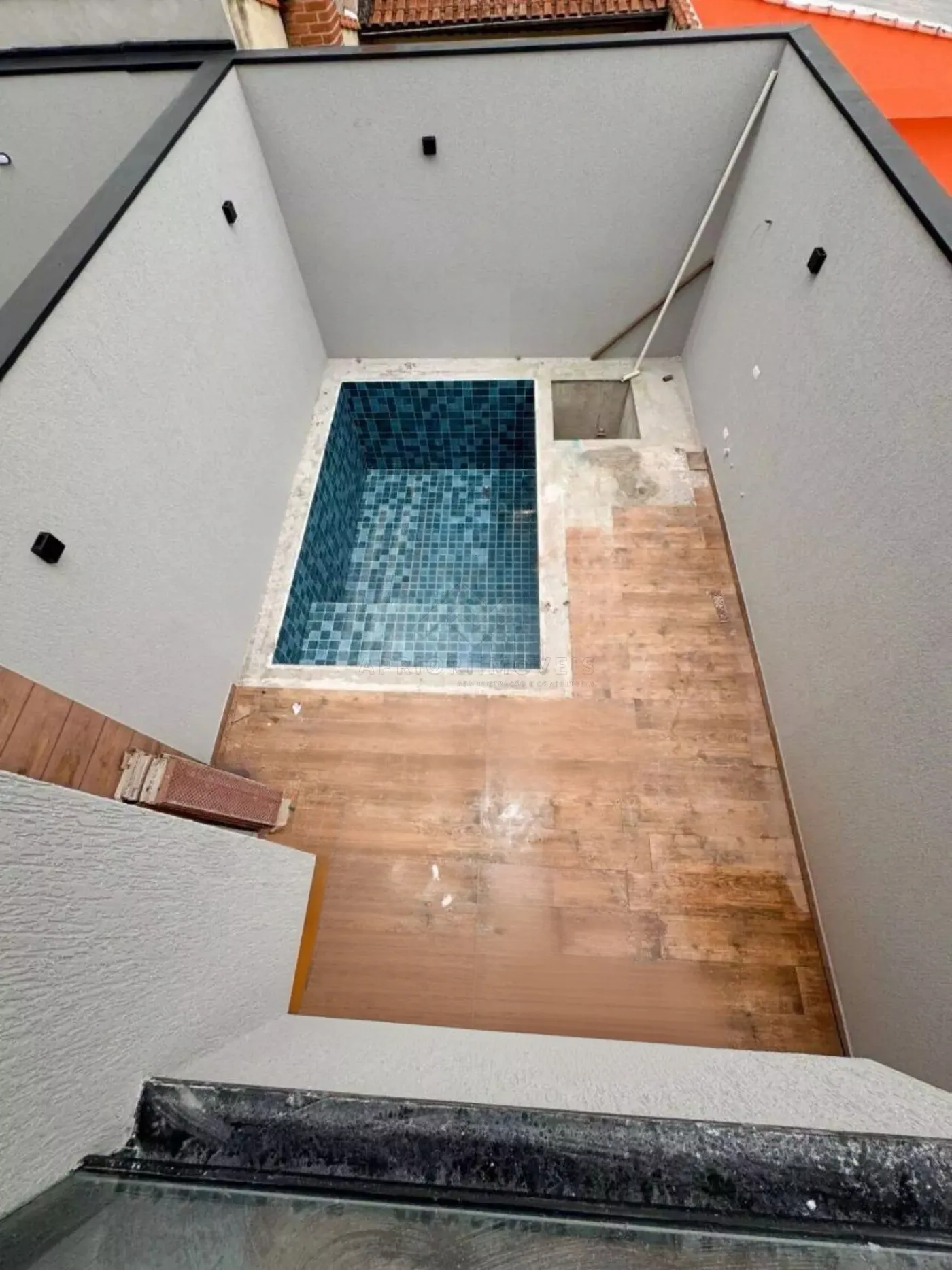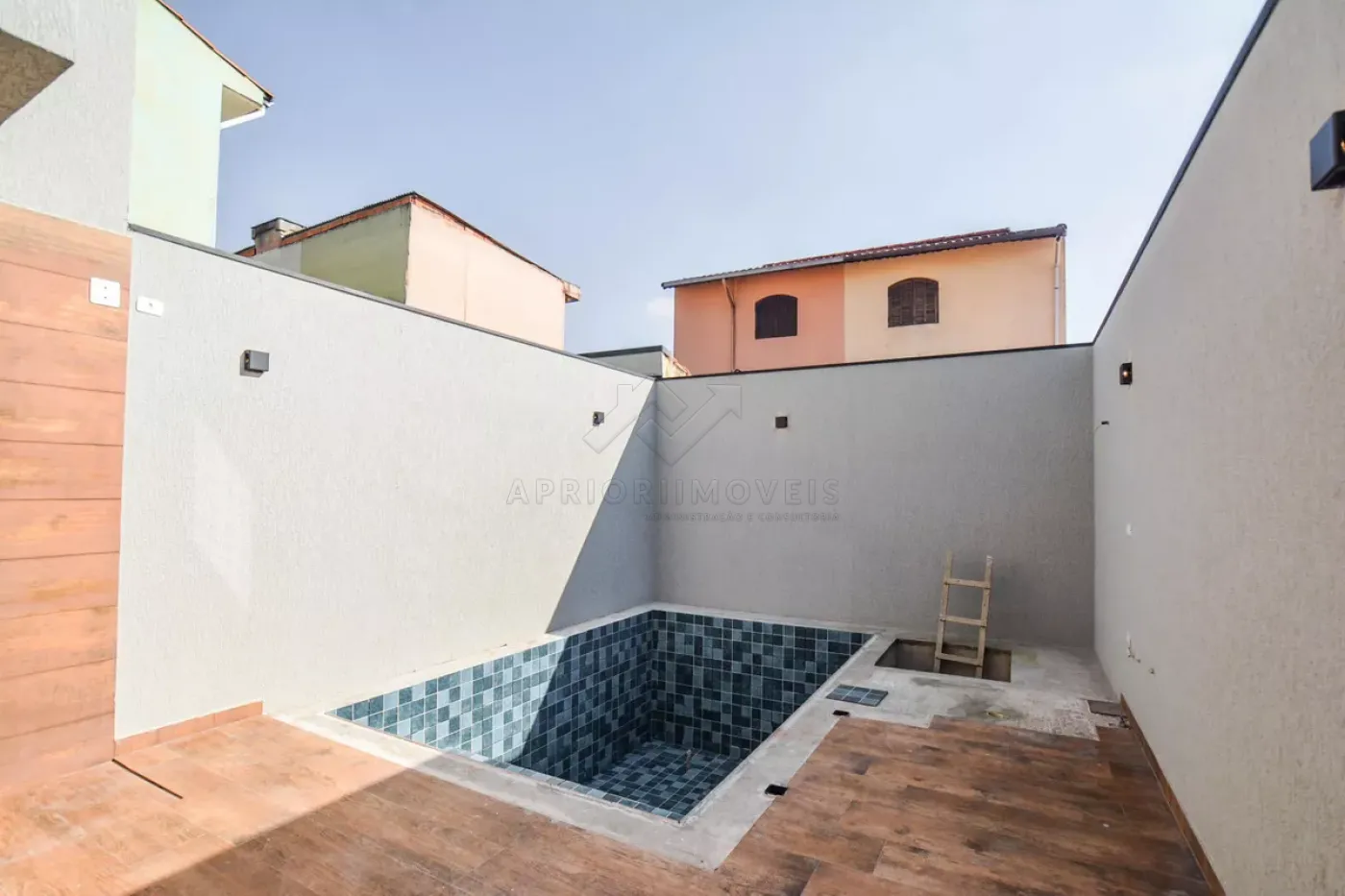 Quintal lateral com acesso para piscina nos fundos;