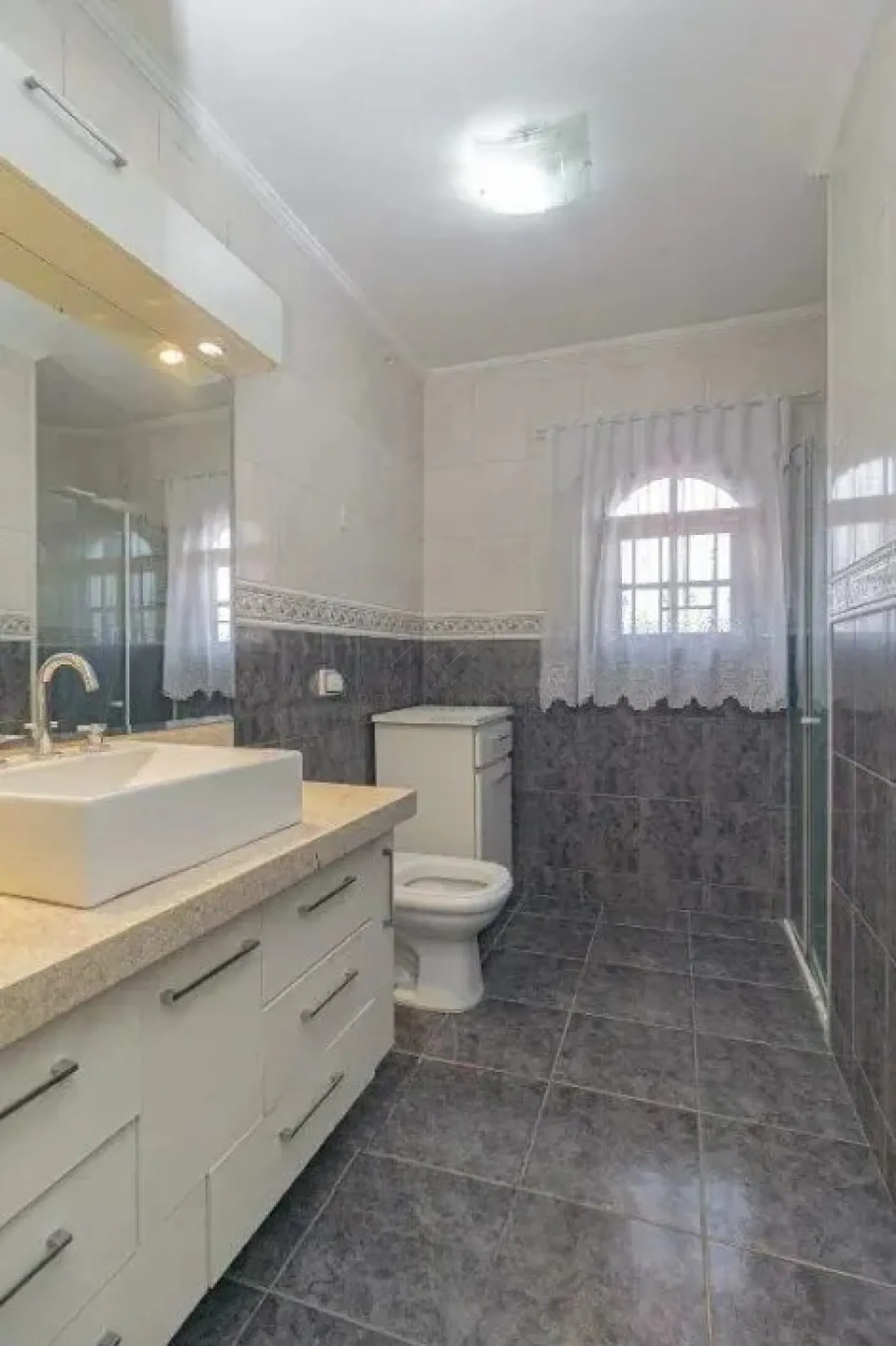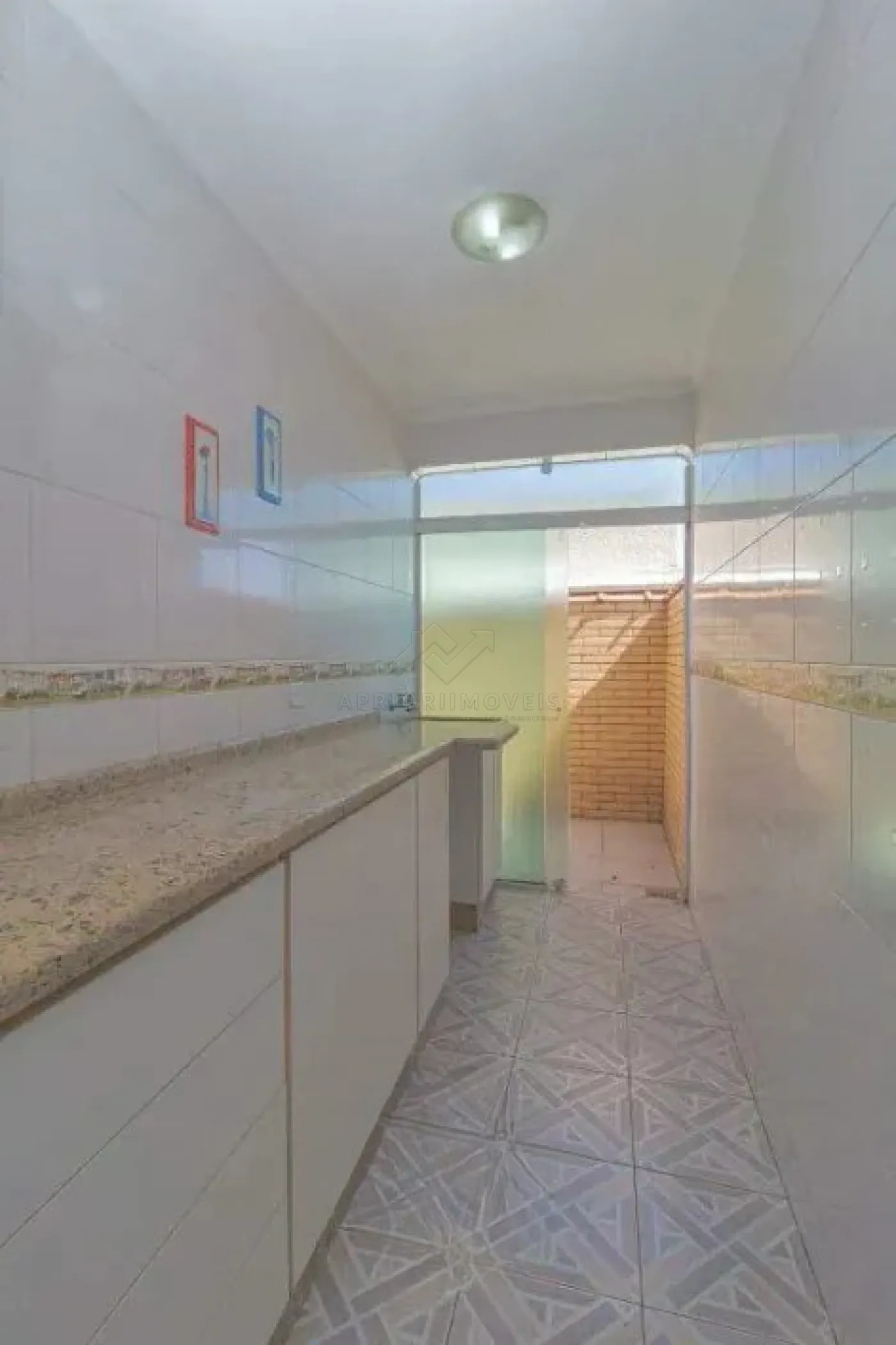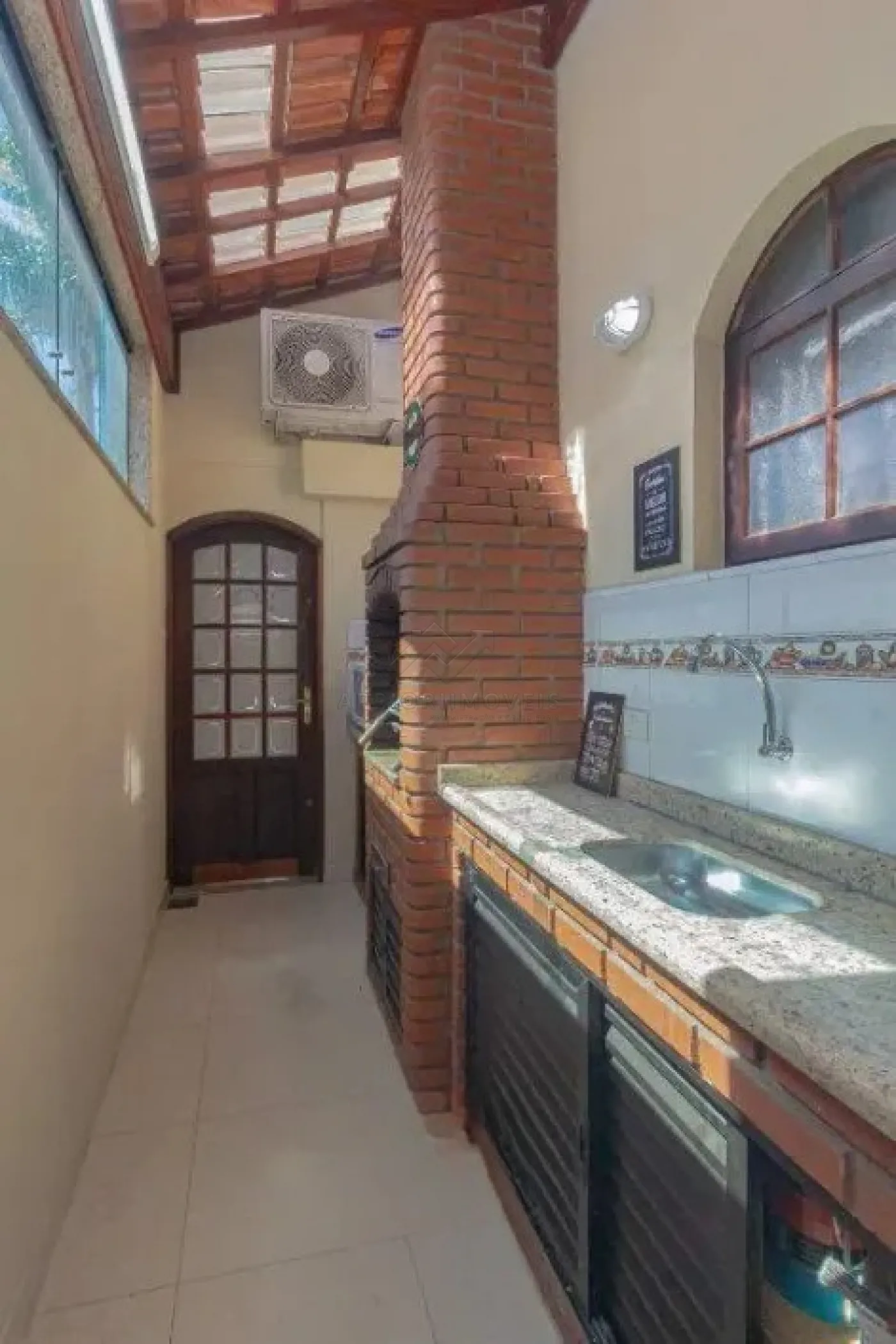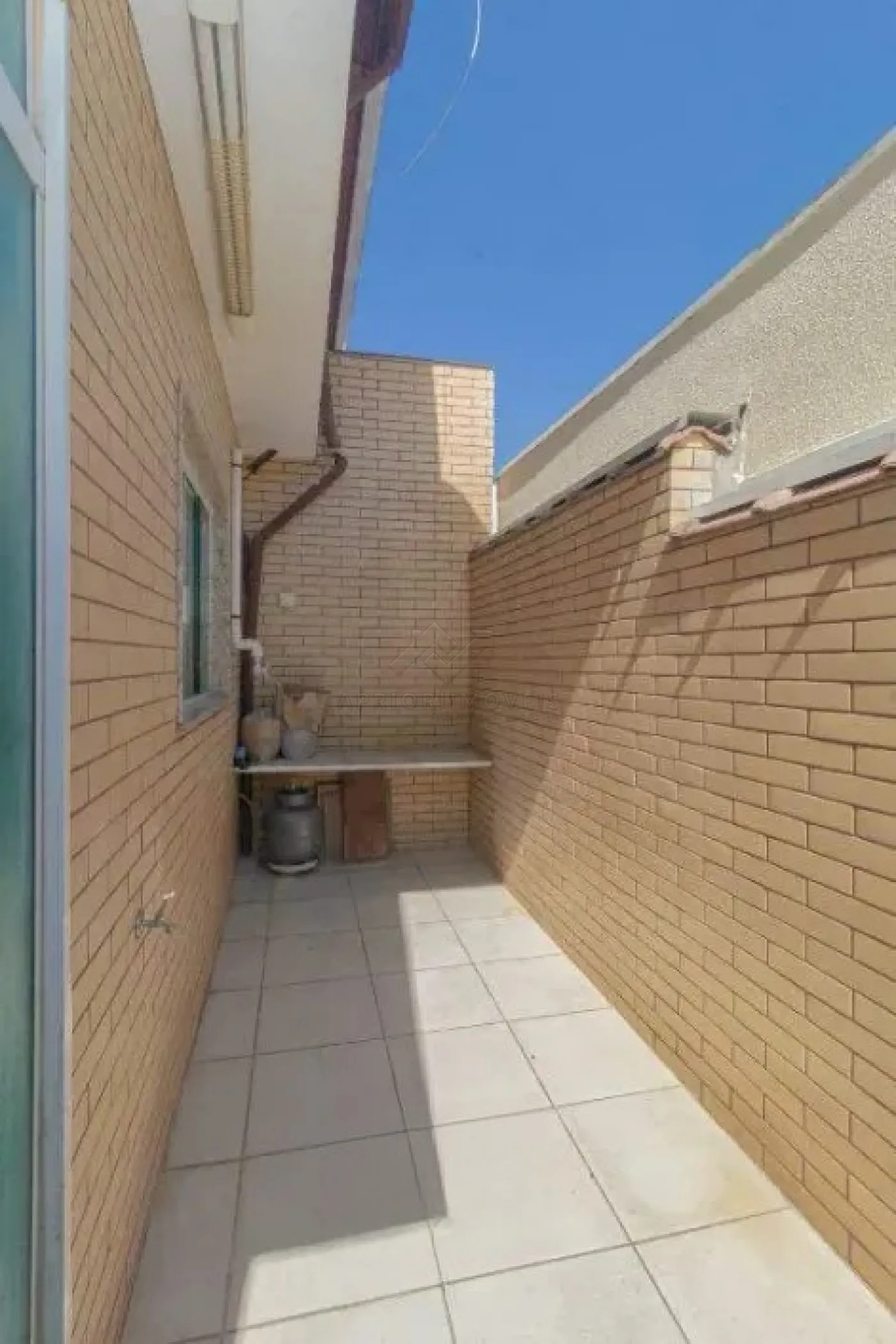 Quintal lateral coberto e com armários, acesso para os fundos.