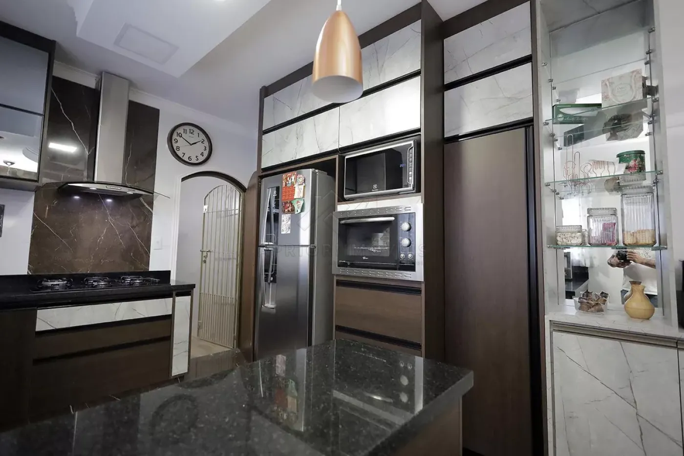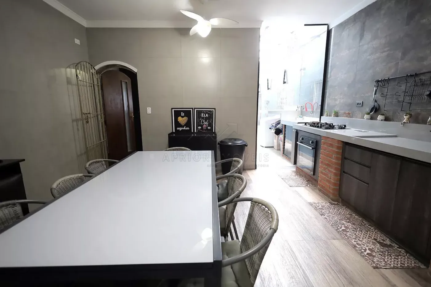 Cozinha com planejados, fogão e forno;