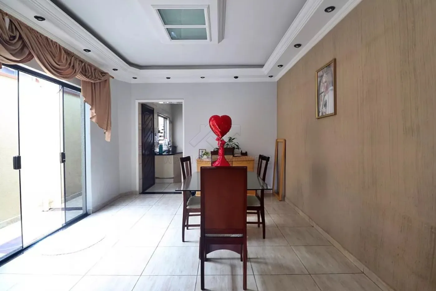 Sala ampla com teto rebaixado;