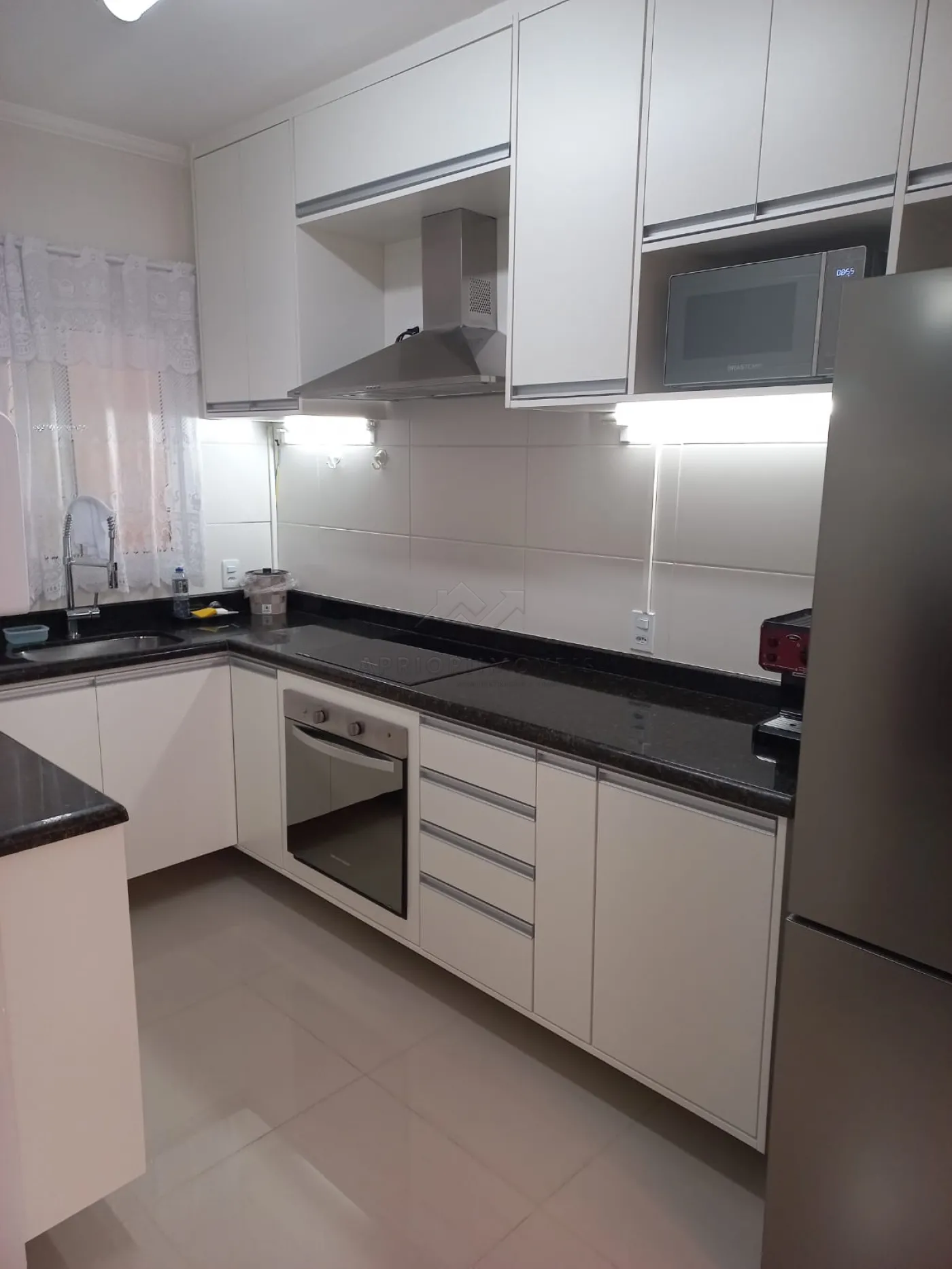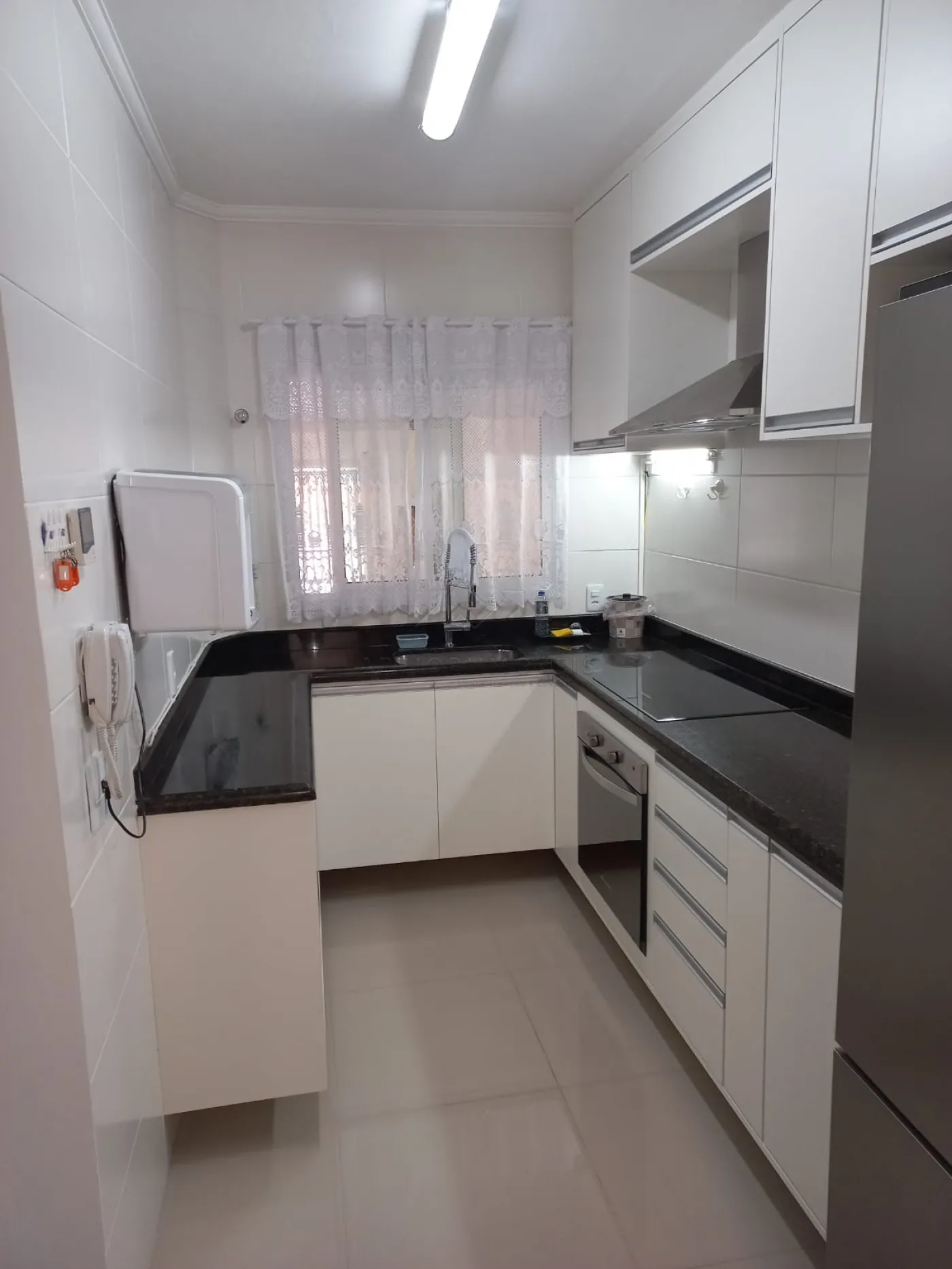 Cozinha funcional com balcão em granito;